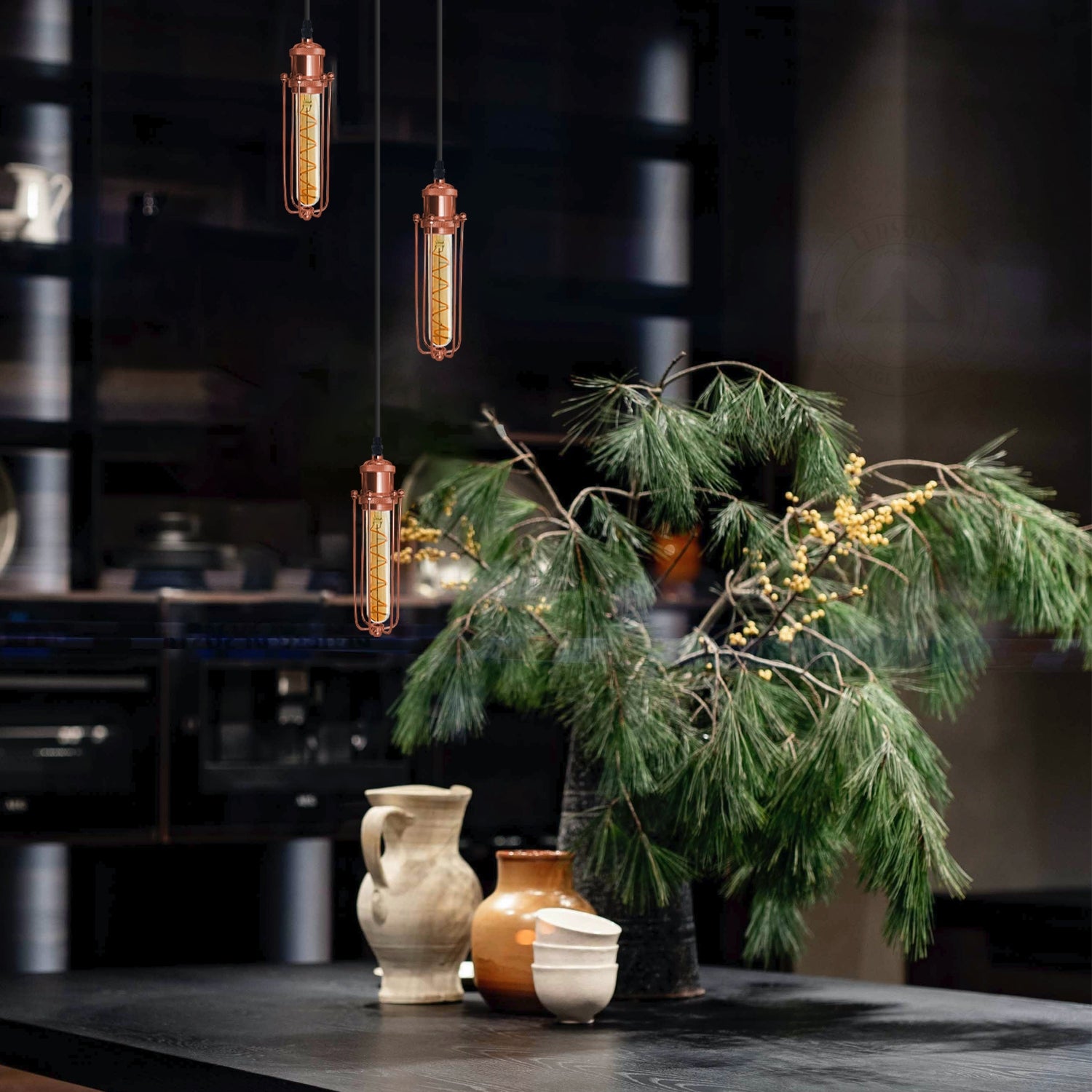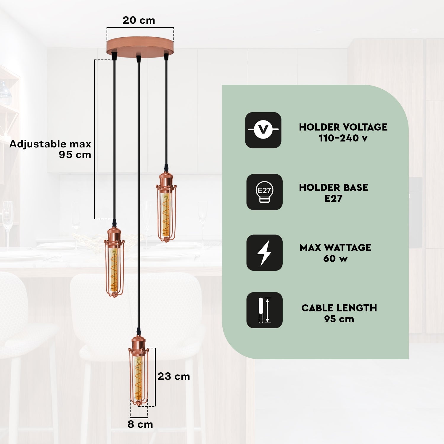 3 Head Round Base Rose Gold Ceiling E27 Pendant Light with Wire Cage
