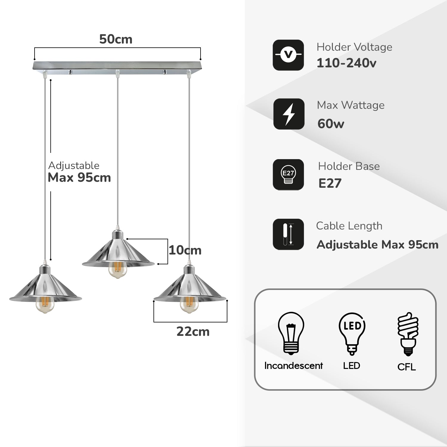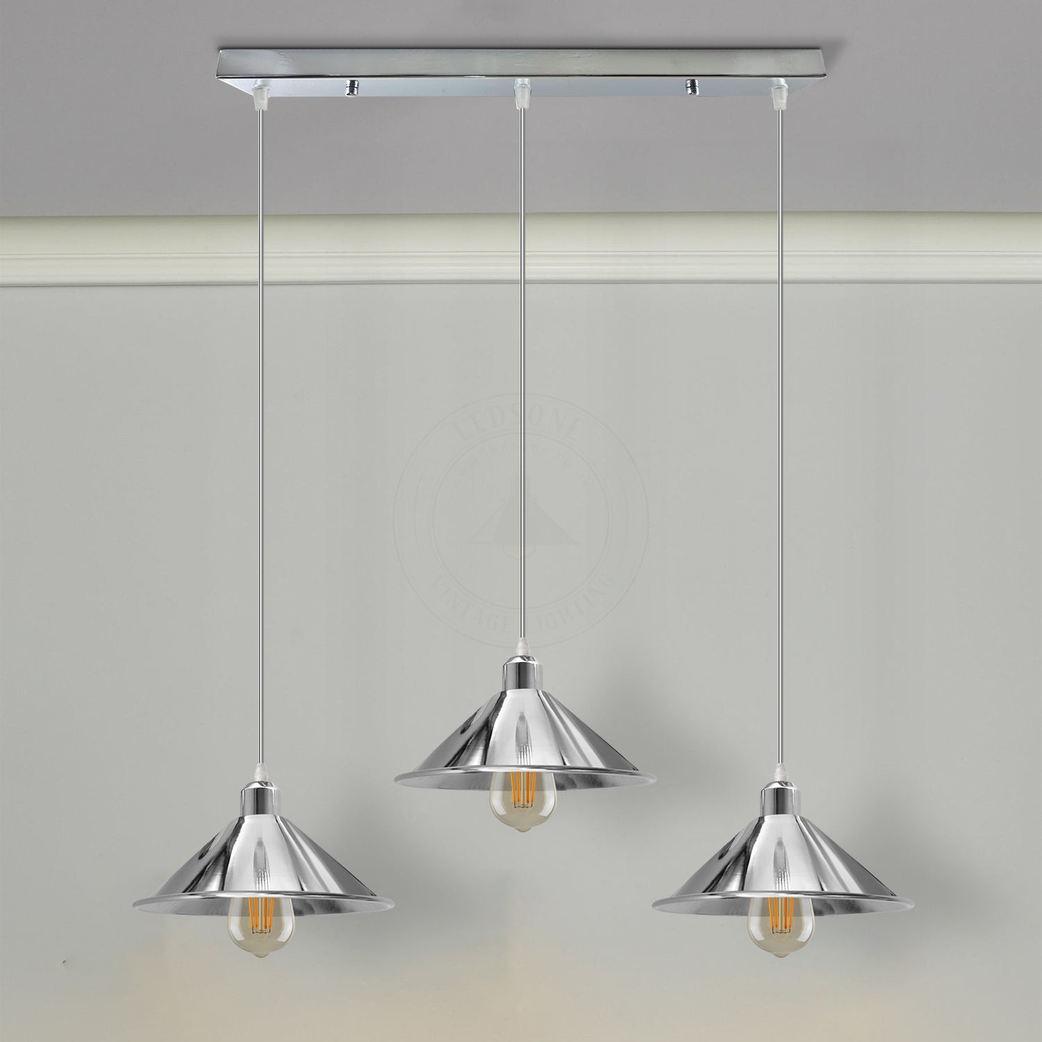 3 Head Rectangle Base Industrial Vintage Ceiling Pendant Light Shade Hanging Lamp