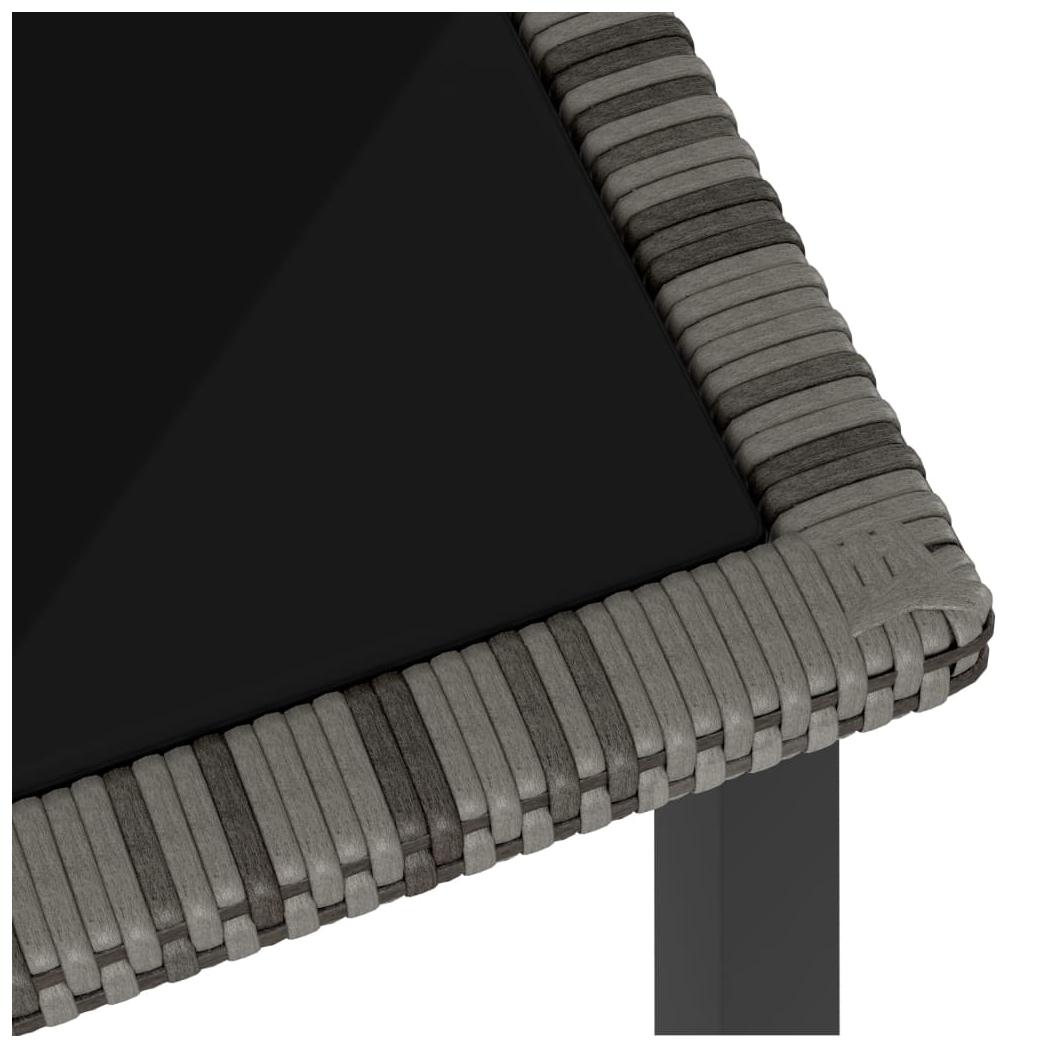 - Material: Poly rattan, powder-coated steel, glass