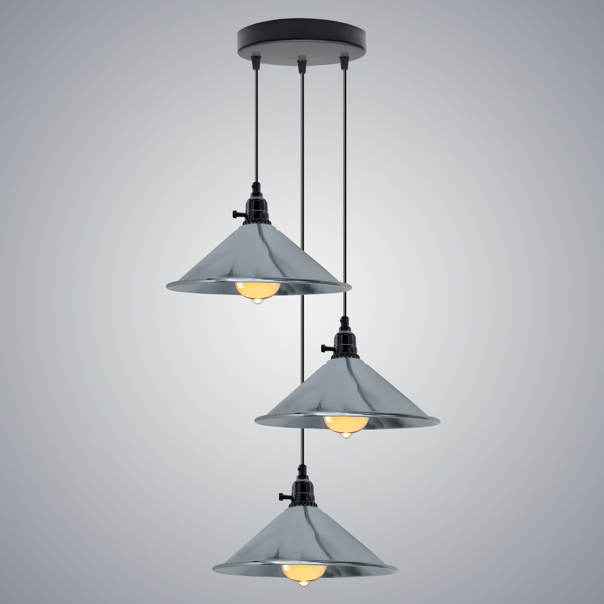 Industrial 3 Head Cluster Ceiling Pendant Light with Adjustable Cord -