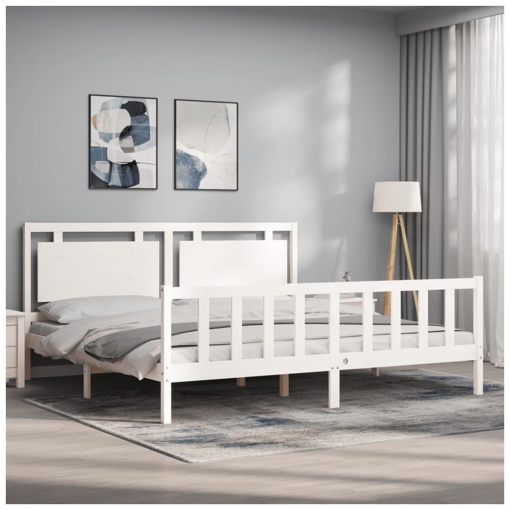 Bed Frame with Headboard White 200x200 cm Solid Wood