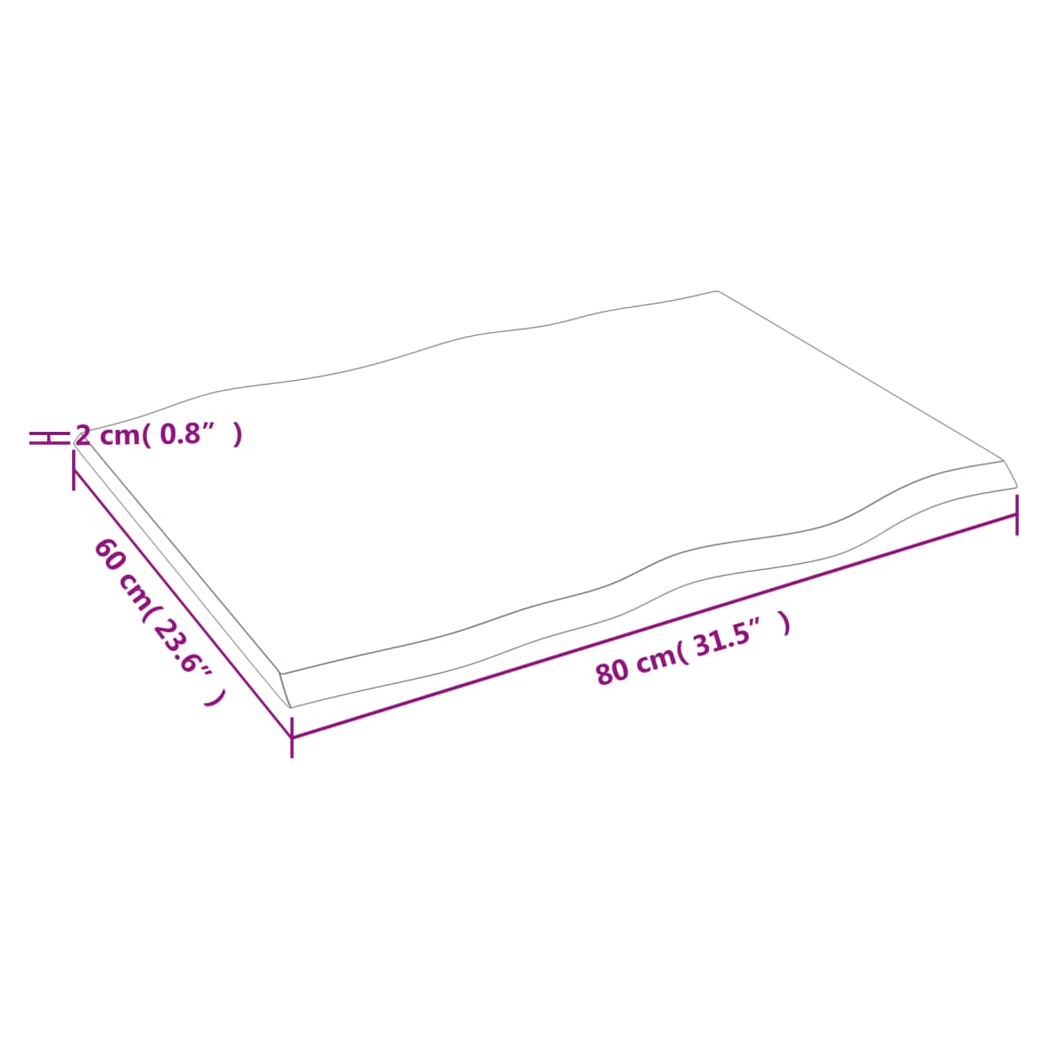 Table Top Dark Brown 80x60x2 cm Treated Solid Wood Oak Live Edge