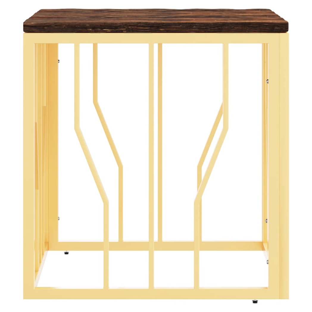 Coffee Table Gold Stainless Steel and Solid Wood Reclaimed