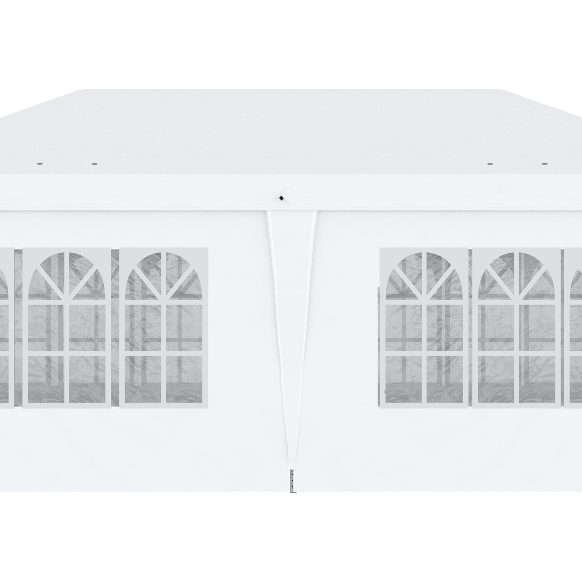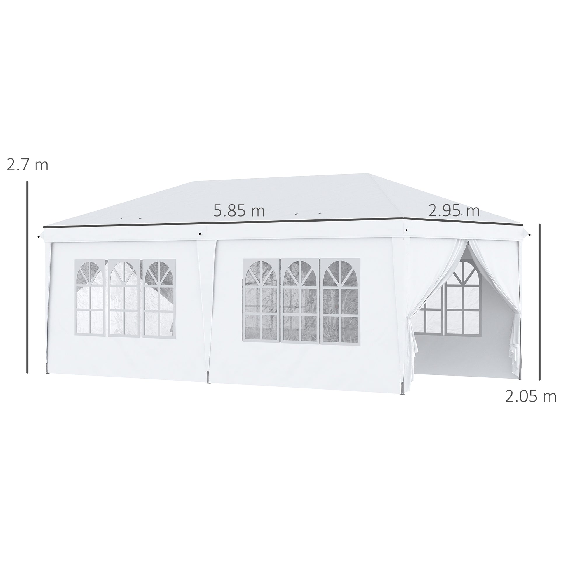 This Outsunny 6 x 3m outdoor marquee is a simple, easy and adjustable outdoor shelter - perfect for plenty of different parties and gatherings. The steel frame means a strong structure, with the open and spacious design accommodating many guests. It comes with a protective canopy canopy - all sides can be removed and attached easily for an open or closed space, whenever. Package comes with carry bag, six guy ropes and 12 ground stakes.