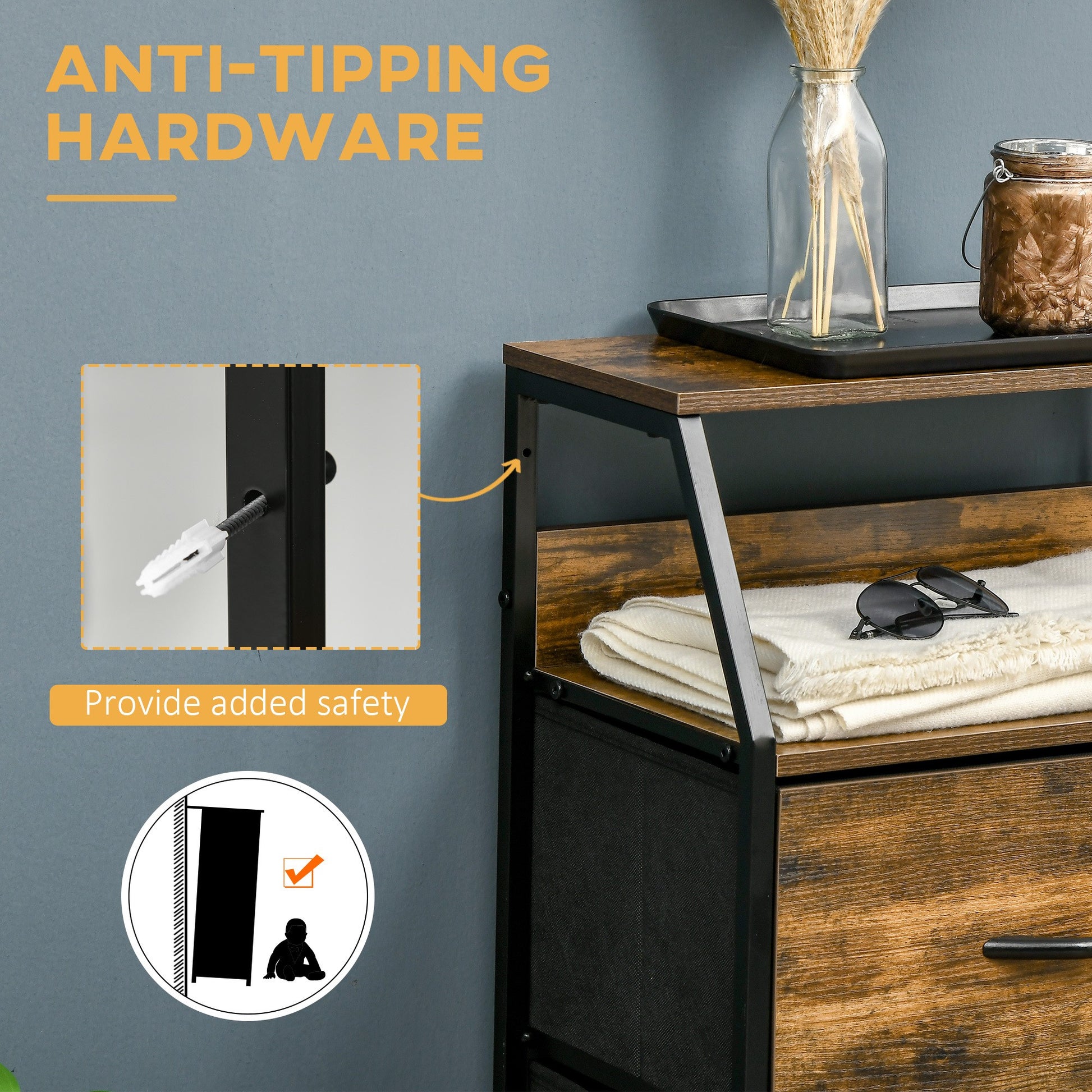 A stylish storage cupboard, for handy home tidiness, is always a winner. Look to this HOMCOM industrial-style sideboard for a stand-out piece this season and beyond. A steel frame for a strong, supportive structure, with durable MDF shelves make this piece suitable for everyday use. It comes with three fabric drawers - generous amount of room the drawers are easily removed. Complete with handy adjustable feet.