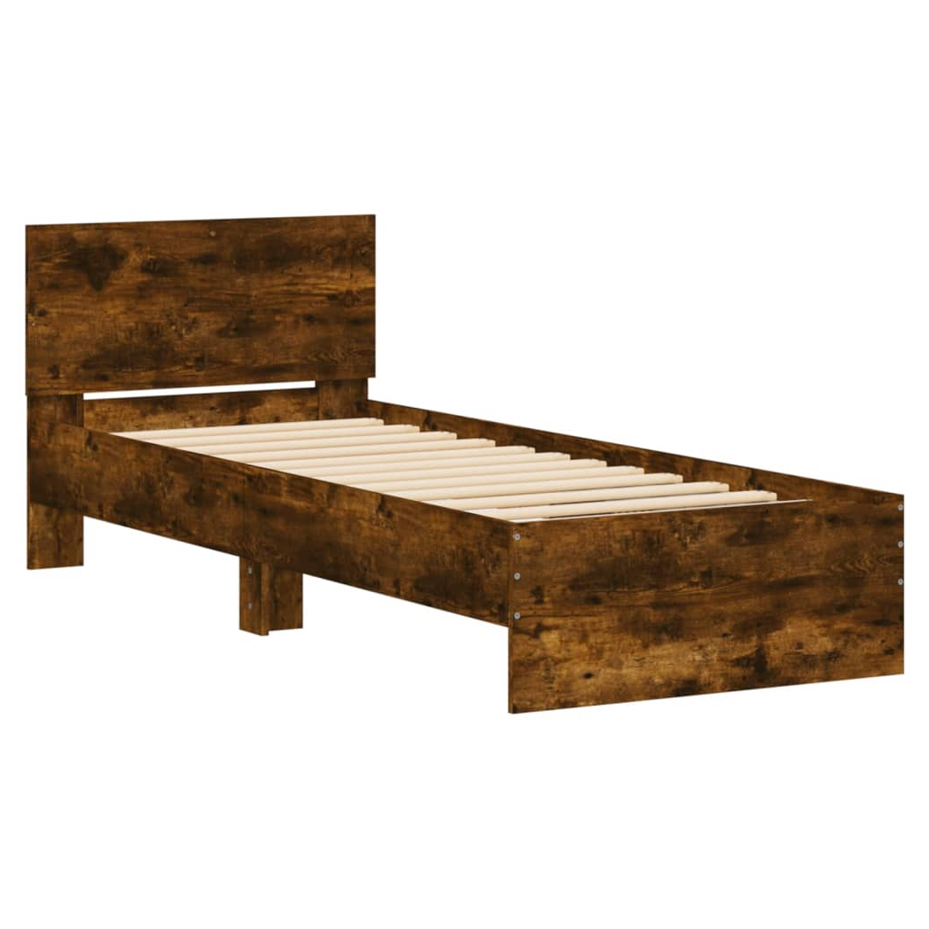 Bed Frame with Headboard Smoked Oak 75x190 cm Small Single Engineered wood