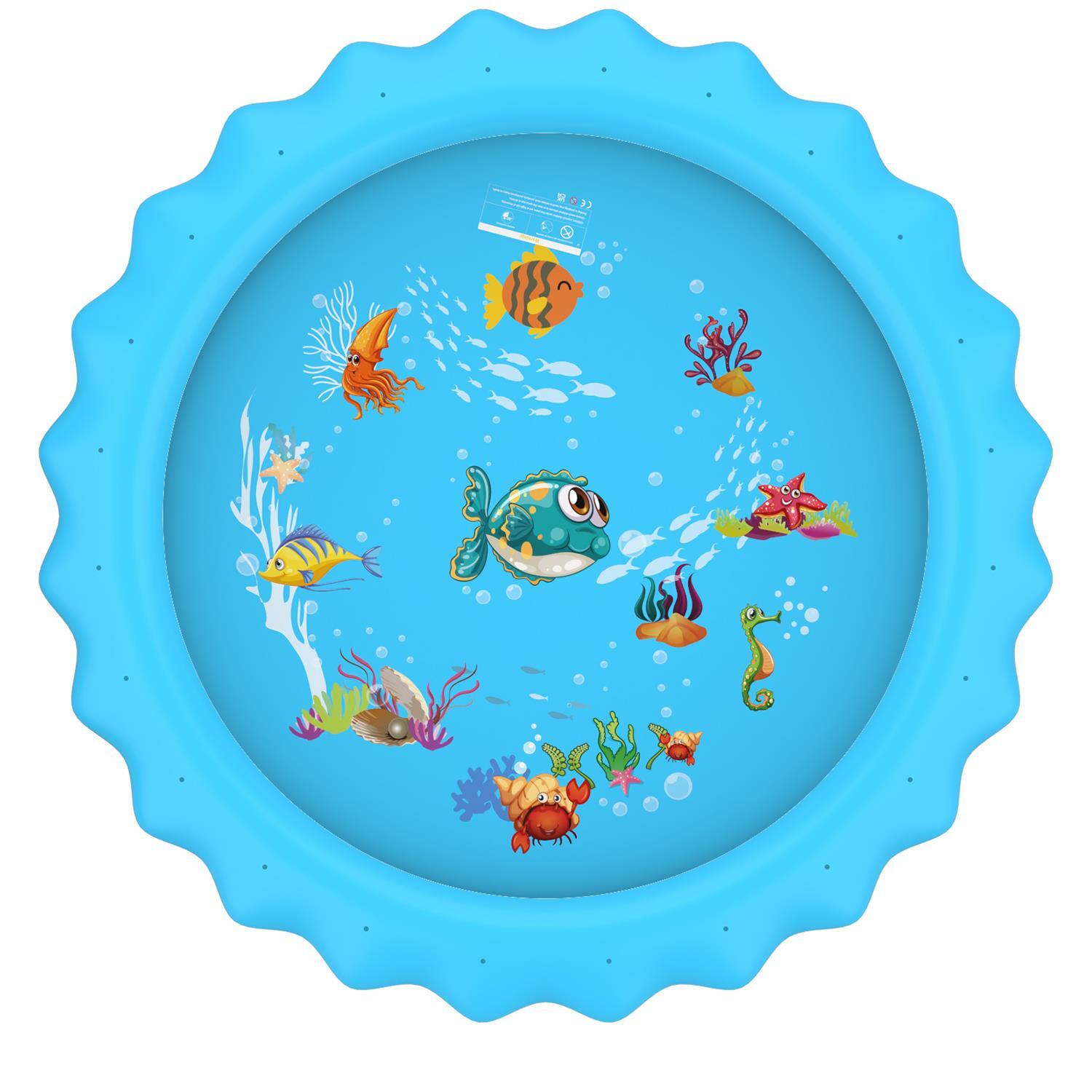 MULTIPURPOSE SPLASH MAT: 168 cm aquatic design splash play mat for 2-3 children, a perfect summer fun toy for relaxation. It can also be used as a sandpit, ball pit, or even a small pool as well as a sprinkler pad. Can even be used as a pet's splash pool.EASY TO USE: Simply inflate and connect the water intake valve to your standard garden hose to enjoy a sprinkler splash. Adjust the height of the sprinkles by increasing or decreasing water pressure. Please do not use a high-pressure pump to feed into the mat.FEATURES: Made from heavy-duty PVC material and BPA-free. Includes a large 7 x 7 cm repair patch.PERFECT GIFT: Kids will love playing with water especially on a hot summer day, this will be an ideal gift for kids.SUITABLE FOR: Ages 5 to 14 years. Please note max weight limit for the playmat is 100kg.