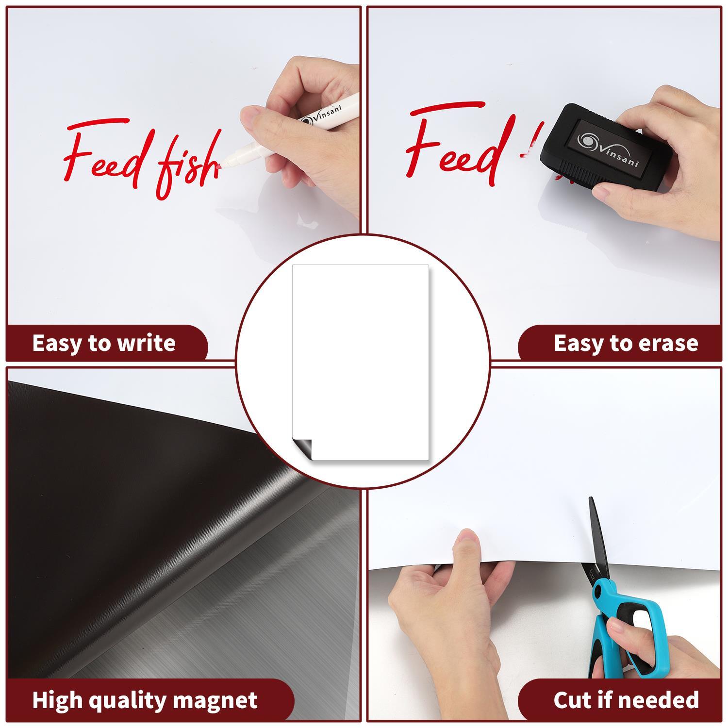 BE CREATIVE: Perfect for all ages, ideal for kids to practice writing and drawing skills and enable you to organise your thoughts, and highlight certain words and phrases.VERSATILE DESIGN: A multifunctional magnetic whiteboard designed to be a planner and organiser. The whiteboard is suitable for use in a variety of environments from home to office. Can be displayed on any magnetically receptive surface, turning it into a place to store useful notes and reminders. SET INCLUDES: 1 x A3 magnetic whiteboard, finished with our premium gloss, 2 x Magnetic dry pen with eraser and 1 x magnetic eraser block.HIGH QUALITY: Made from finest materials so you can be sure that the Vinsani magnetic whiteboard will have several years of use with proper care. DIMENSION: The whiteboard measures 42.8 x 29.7 cm