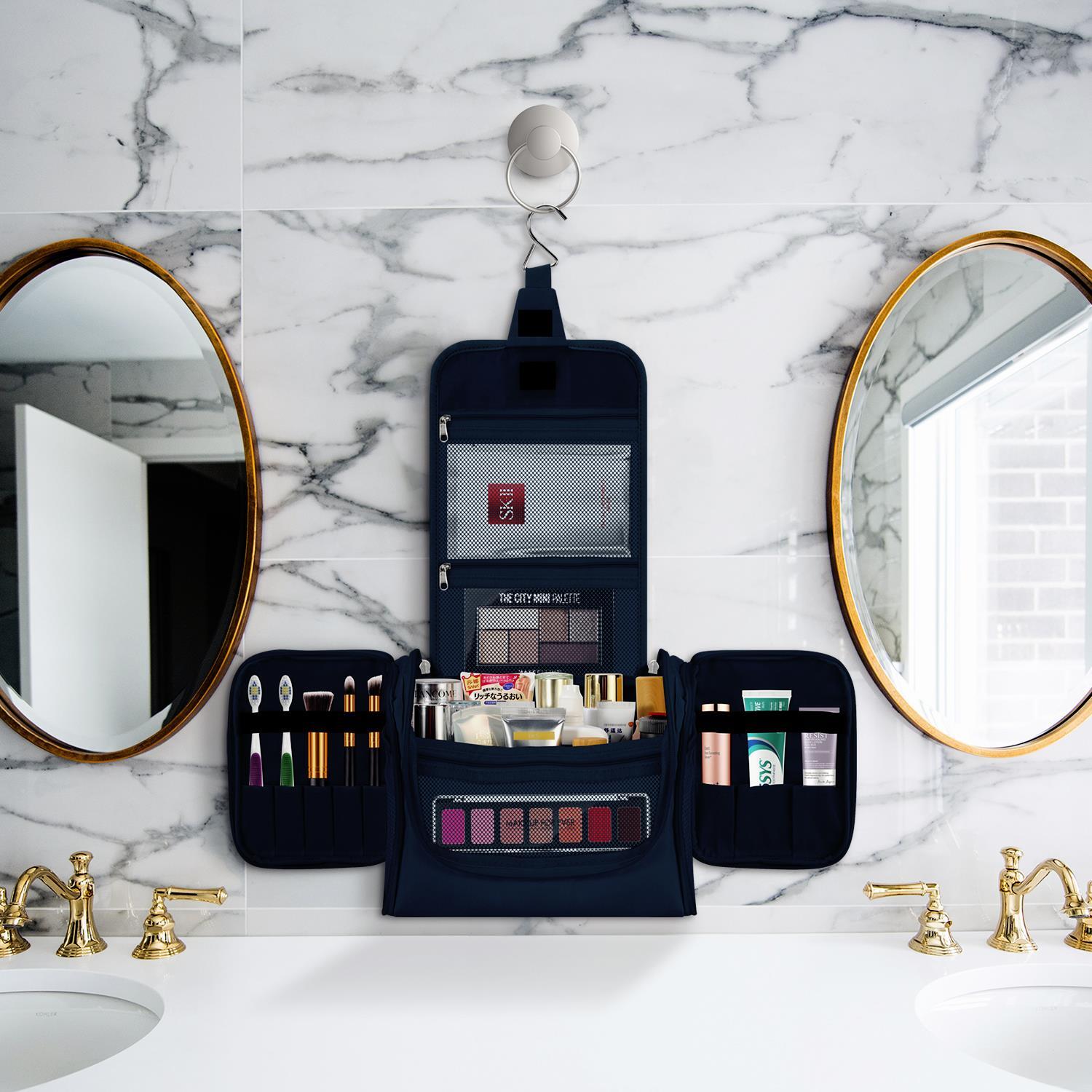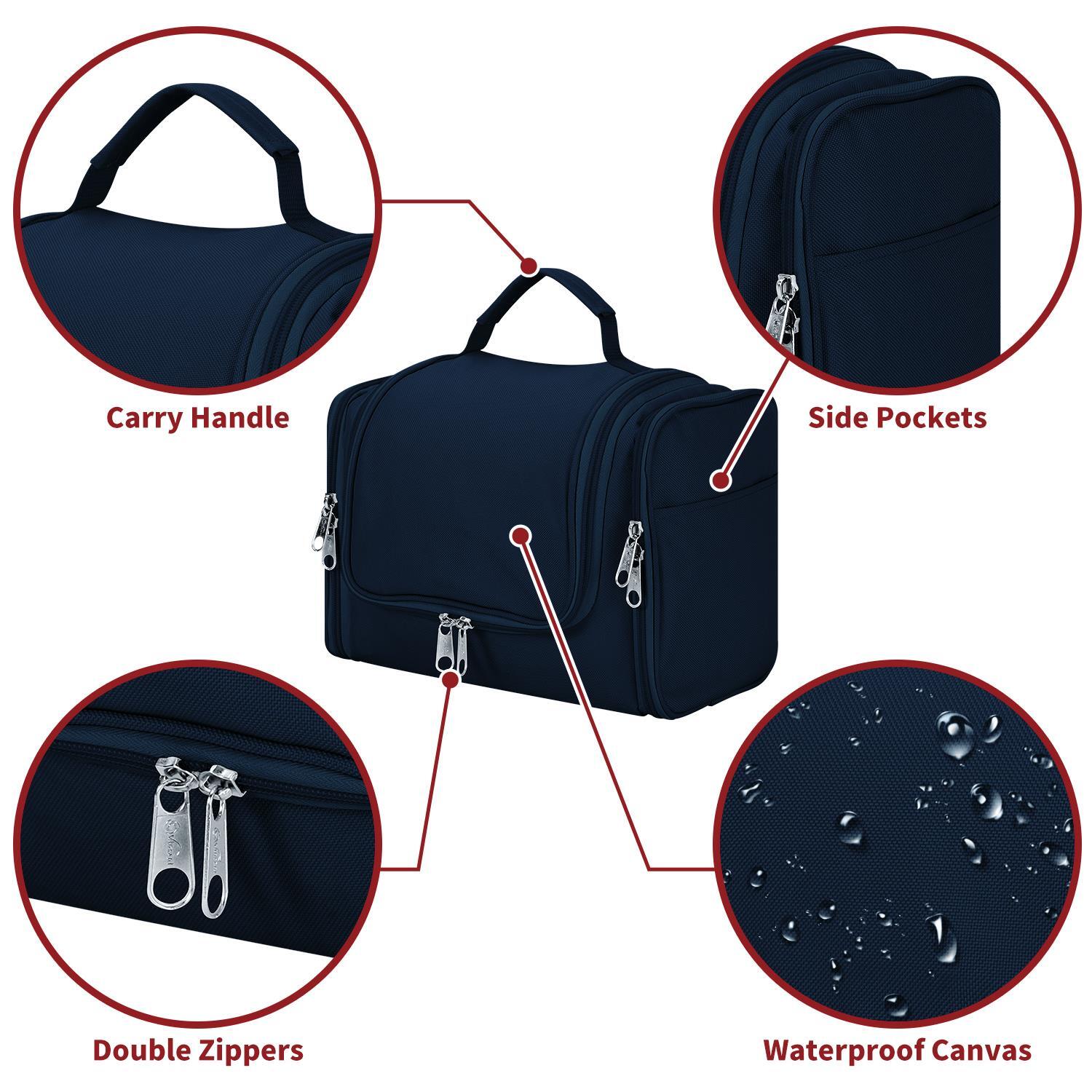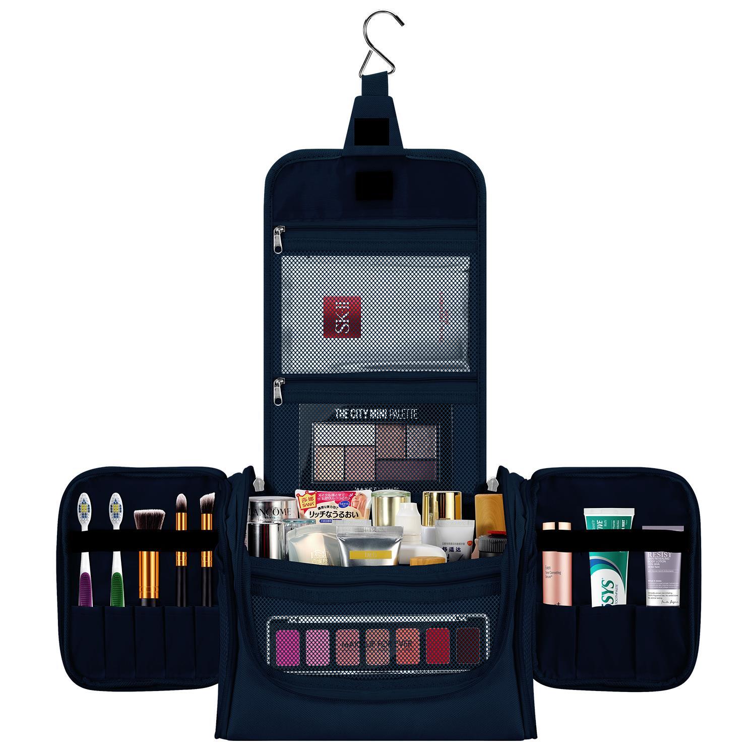 TRAVEL EASIER: Organising your travel essentials has never been easier! Each of your items is plainly ordered and visible in this toiletry bag, ensuring that you'll able to locate your stuff in seconds rather than digging personal items through a jumble. Suitable for road hauls or family vacations, camping, gym session, business trips, hiking, and other usesCONVENIENT DESIGN: With a reinforced double-stitched handle, two zippers, and a hook that works fantastically on your bathroom or other places, this toiletry bag offers the most practical design and plenty of space for your essentials. All of your essential toiletries can be neatly stored in multiple compartments with functional mesh pockets and elastic loops without taking up a lot of room in your luggage..SAVES SPACE: Saves space with these bag that has an internal space that holds all your makeup and toiletries making packing and unpacking a breeze. They can be squeezed into the luggage organiser for bags to save room and since this can be compacted, they are incredibly light without adding weight to your baggage.MULTI-USE: These toiletry bags are perfect for organising and storing a variety of items, including cosmetics, toiletries, and charging cords for electronics. It can also be used as gear bag, wash bag, bath organiser, bathroom bag, shaving bag, convenience kit, travel kit bag, hygiene kit, and other similar purposes.PREMIUM QUALITY: High-quality nylon fabric that are durable, washable, waterproof, moisture-proof and dustproof. Each bag measures 15 x 28 x 20 cm (5.9 x 11 x 7.9in). Available in 8 colors: Navy, Hot Pink, Black, Blue, Dark Grey, Light Grey, Pink, and Purple.