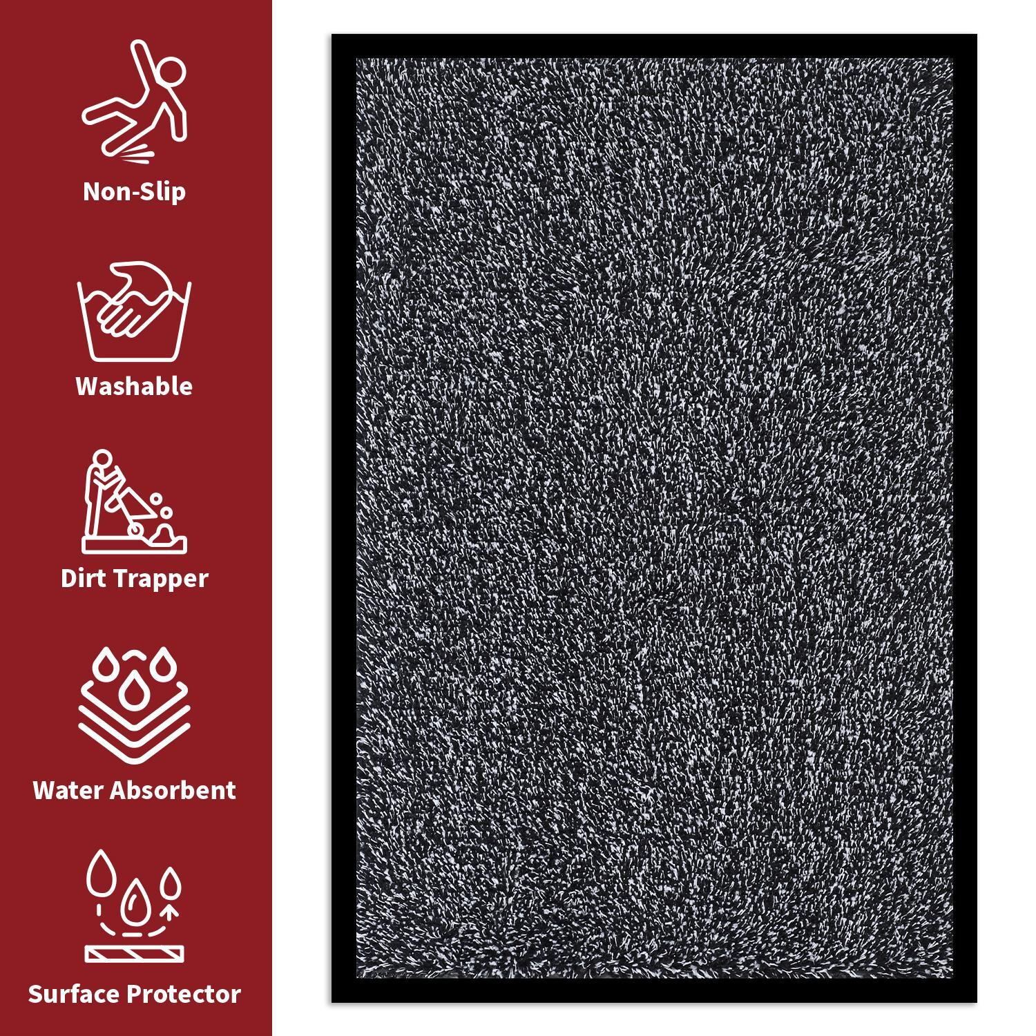 GOODBYE DIRT & DUST: Vinsani floor mats are built to firmly hold dirt and dust, keeping them off your living space and offering a neat and tidy environment. Easy to clean, rinse it in water and let it dry, shake it in the air or running a vacuum over it.NON-SLIP: Made with a waterproof vinyl backing and an extended edge surround, this mat will not fold from the corners and will lay flat, keeping the mat stable and preventing slips and falls. Excellent for tile or wood flooring.WATER ABSORBENT: Vinsani front door mat is water-resistant and designed to withstand rain. It can absorb a large volume of moisture per square metre, so you'll never have to worry about wet and muddy footprints again.VERSATILE: The Vinsani barrier mat is an amazingly absorbent doormat that keeps your floors clean and dry, perfect for home or commercial uses, whether it's in the patio, laundry room, entryway, doorways, kitchens, bathrooms, hotels, restaurants, or offices. Suitable for all kinds of purposes and perfectly designed to withstand areas with high traffic.PREMIUM QUALITY: Mat absorbs dirt and water quickly thanks to its unique design and made up of premium polypropylene fibres and superior rubber, making it a long-lasting and high-quality material. Available in 4 colours and 3 sizes all can be used in any interiors, indoors or outdoors.