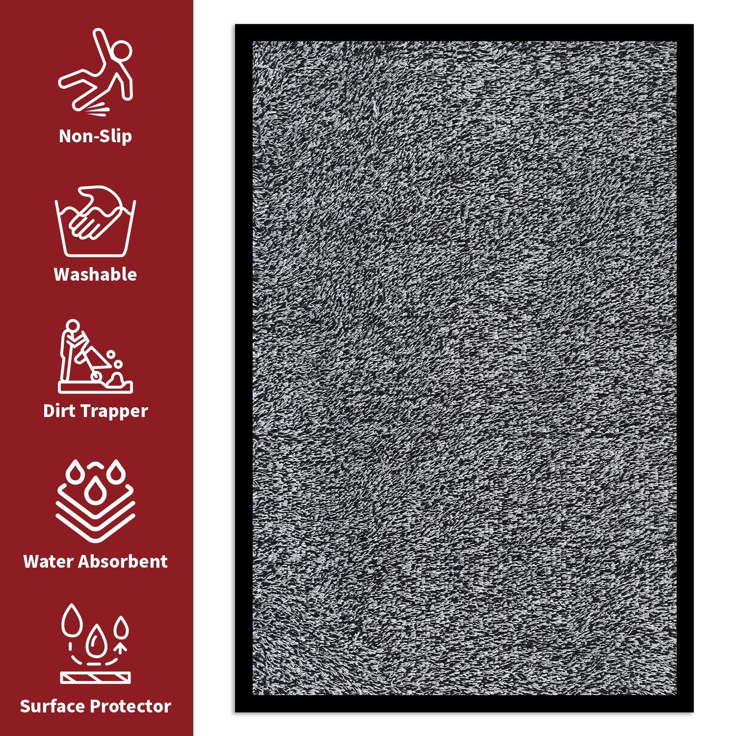 GOODBYE DIRT & DUST: Vinsani floor mats are built to firmly hold dirt and dust, keeping them off your living space and offering a neat and tidy environment. Easy to clean, rinse it in water and let it dry, shake it in the air or running a vacuum over it.NON-SLIP: Made with a waterproof vinyl backing and an extended edge surround, this mat will not fold from the corners and will lay flat, keeping the mat stable and preventing slips and falls. Excellent for tile or wood flooring.WATER ABSORBENT: Vinsani front door mat is water-resistant and designed to withstand rain. It can absorb a large volume of moisture per square metre, so you'll never have to worry about wet and muddy footprints again.VERSATILE: The Vinsani barrier mat is an amazingly absorbent doormat that keeps your floors clean and dry, perfect for home or commercial uses, whether it's in the patio, laundry room, entryway, doorways, kitchens, bathrooms, hotels, restaurants, or offices. Suitable for all kinds of purposes and perfectly designed to withstand areas with high traffic.PREMIUM QUALITY: Mat absorbs dirt and water quickly thanks to its unique design and made up of premium polypropylene fibres and superior rubber, making it a long-lasting and high-quality material. Available in 4 colours and 3 sizes all can be used in any interiors, indoors or outdoors.