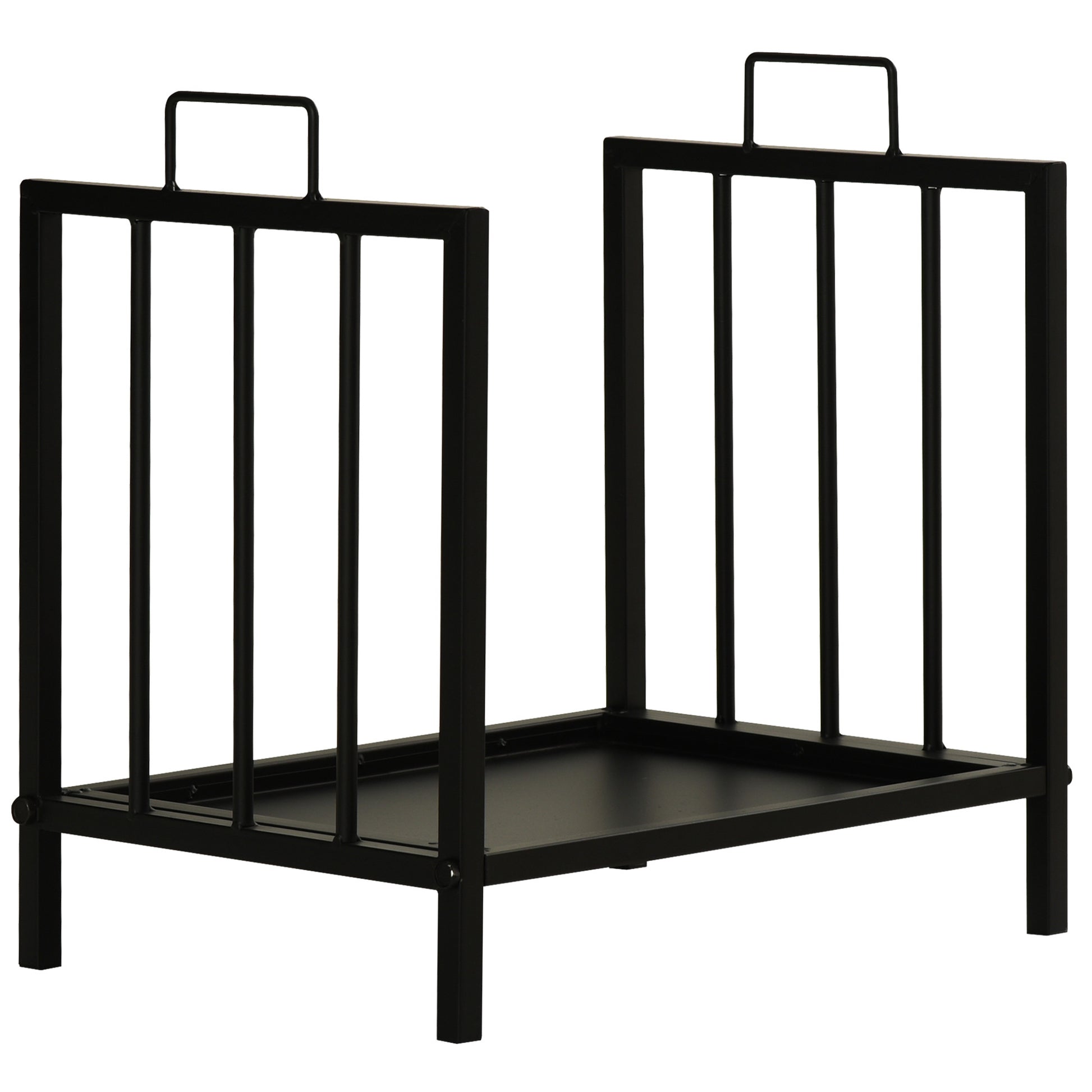 This simple firewood log rack, from Outsunny, will hold all your wood chunks together safely. It's ideal for keeping by the fireside or outdoors. Perfect for the patio, garden, yard or indoors near the fireplace. It has a large capacity and stands off the ground to allow wind flow. With compact size, space-saving and convenient to transport. Decorative and functional, it is a must-have accessory in your wood burning.Features: - Indoor log storage with compact size and classic design;- Off the ground design allows wind flow to keep wood dry;- Made from selected metal with black electrostatic powder-coated finish for extra strength and durability; - Large capacity, can store up to 50 kg of firewood;- Suitable for both indoor and outdoor use;- With two handles, easy to transport;- Assembly required;Specifications: - Colour: Black;- Material: Metal; - Overall Dimensions: 42L x 32.5W x 46Hcm;- Bottom Shelf Size: 39L x 32.5W x 0.2Dcm;- Height from Ground to Shelf End: 6.5cm;- Weight capacity: 50kg;- Item label: 842-209;