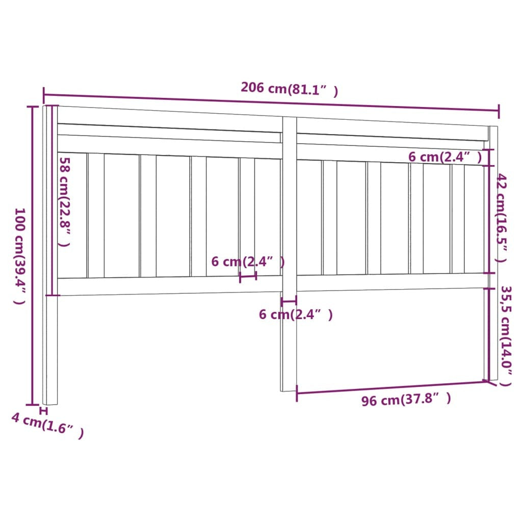 Bed Headboard Honey Brown 206x4x100 cm Solid Wood Pine