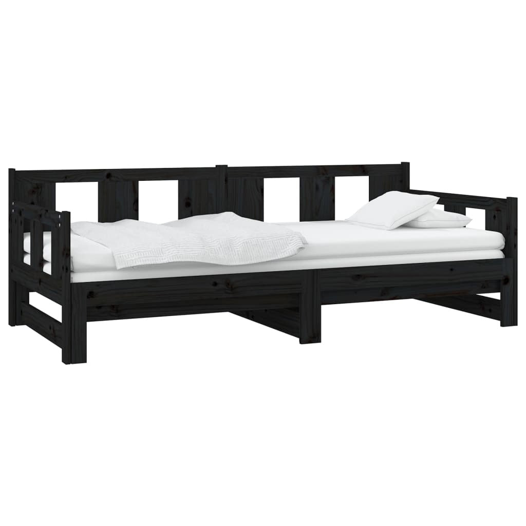 Pull-out Day Bed Black Solid Wood Pine 2x(90x190) cm