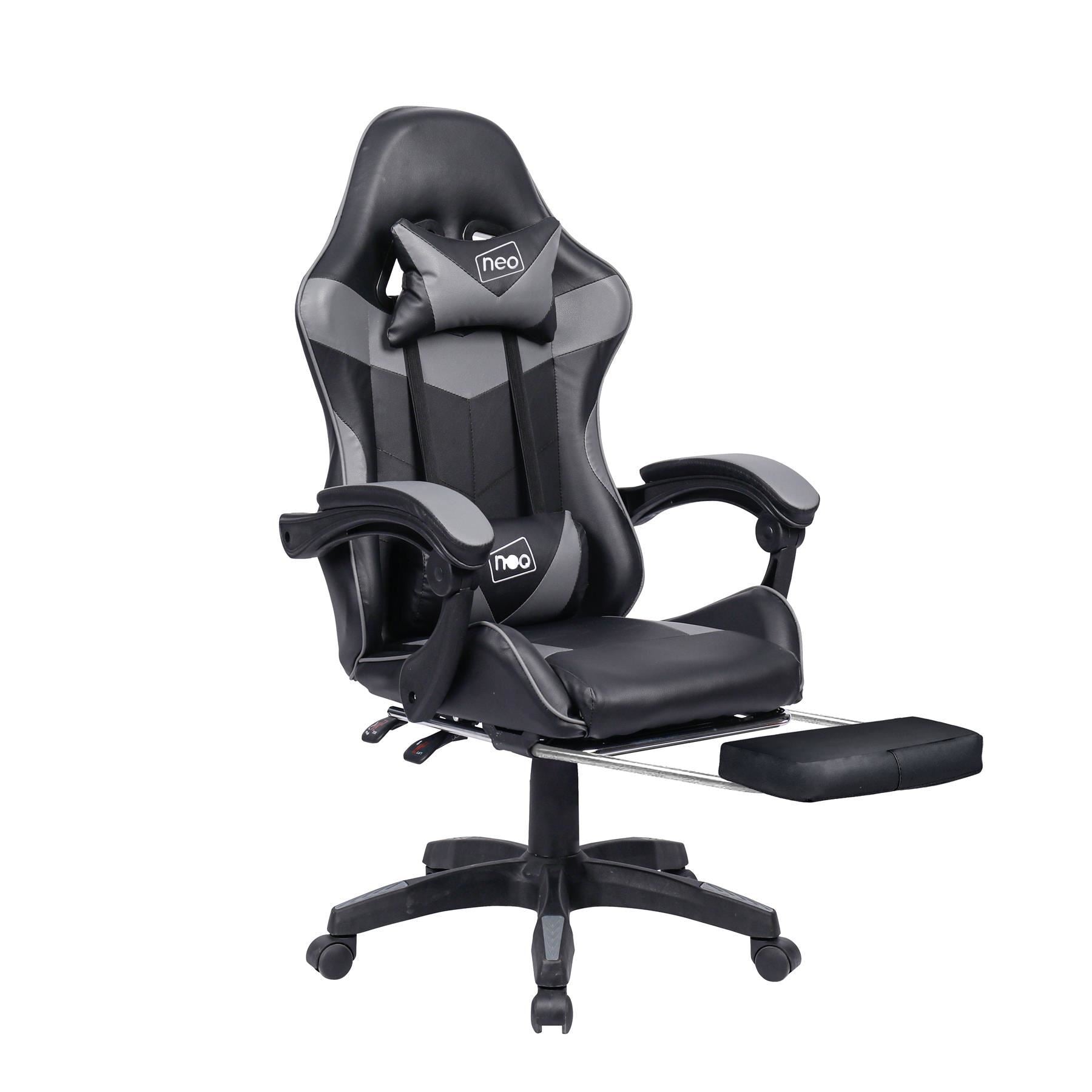 The deluxe Neo branded fully reclinable racing-style green computer office gaming chair is made with high quality PU leather. The Neo computer office gaming chair combines multiple adjustable features, luxurious materials and Ergonomic design for comfort, with lumbar, headrest and footrest support. The Neo computer gaming office chairs support a new level of comfort for gaming, studying and working office environment.