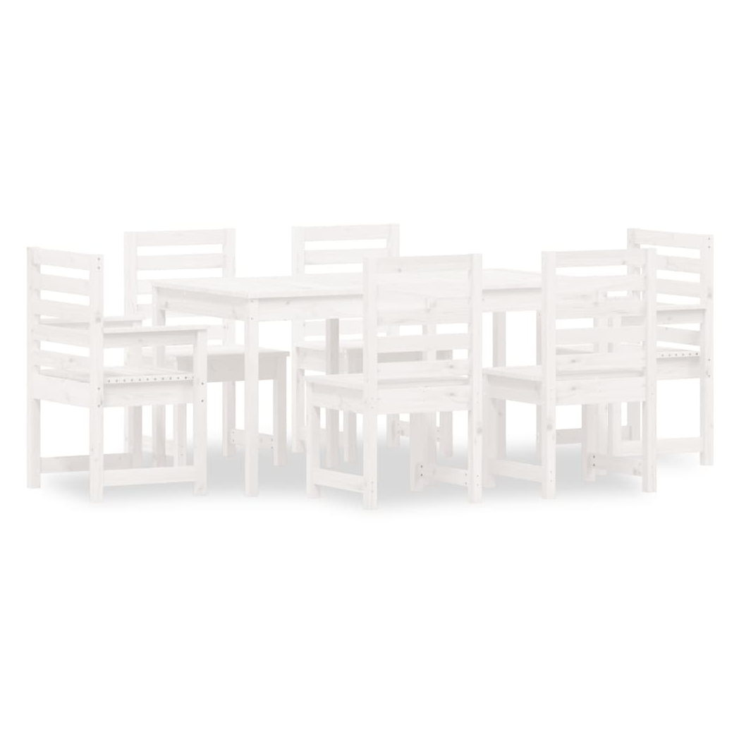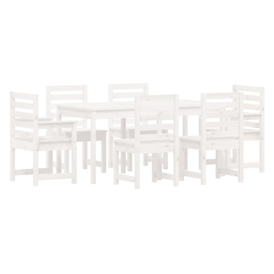 7 Piece Garden Dining Set White Solid Wood Pine