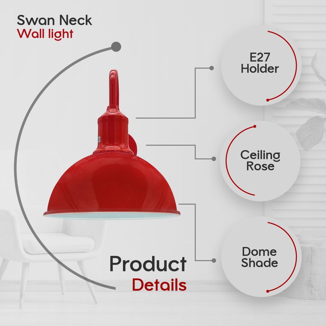 Modern Industrial 2 Pack Swan Neck Metal Arm E27 Sconce Wall Light Set Fixture for Living Room Dining Room Kitchen.