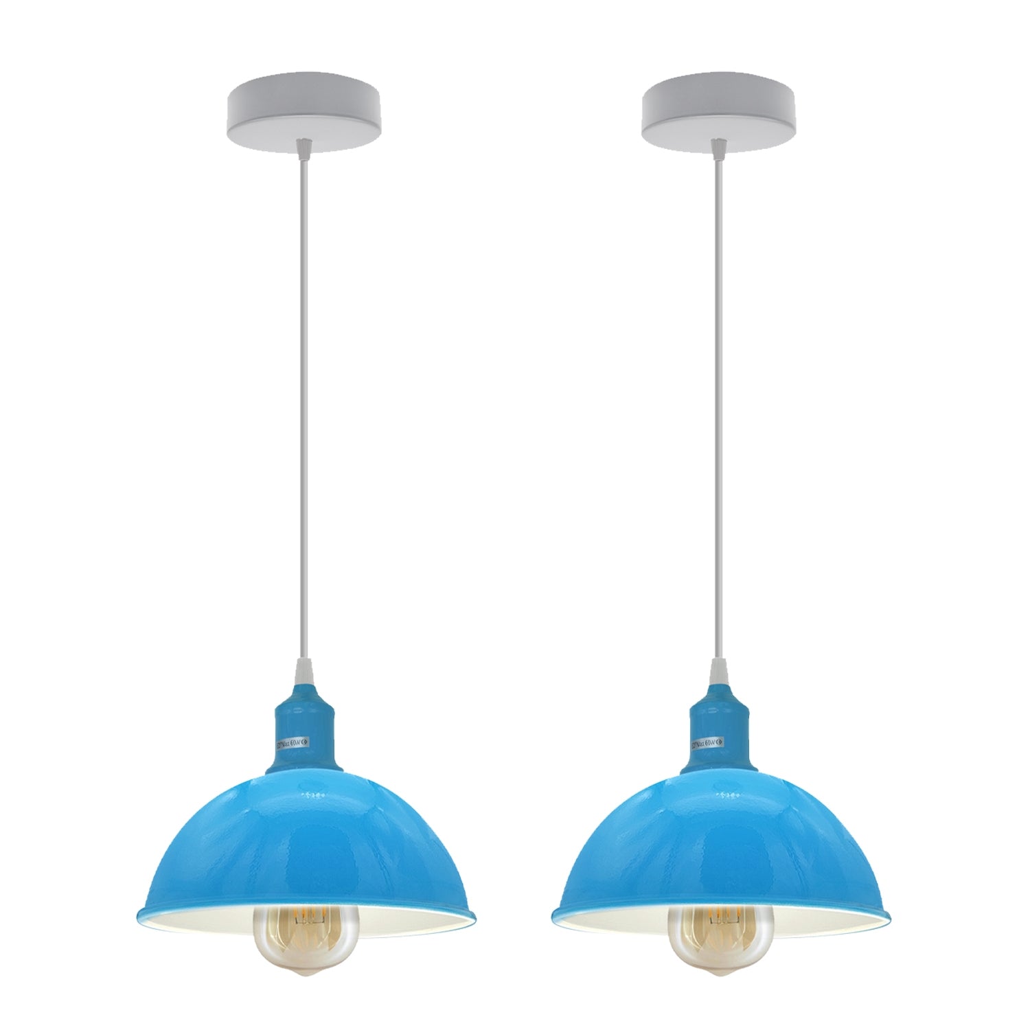 2Pack Dome Shaped Blue Loft Style Sturdy Metal Lamp Shade Pendant Lights 21cm Bottom Spray Painted Finish Inner White