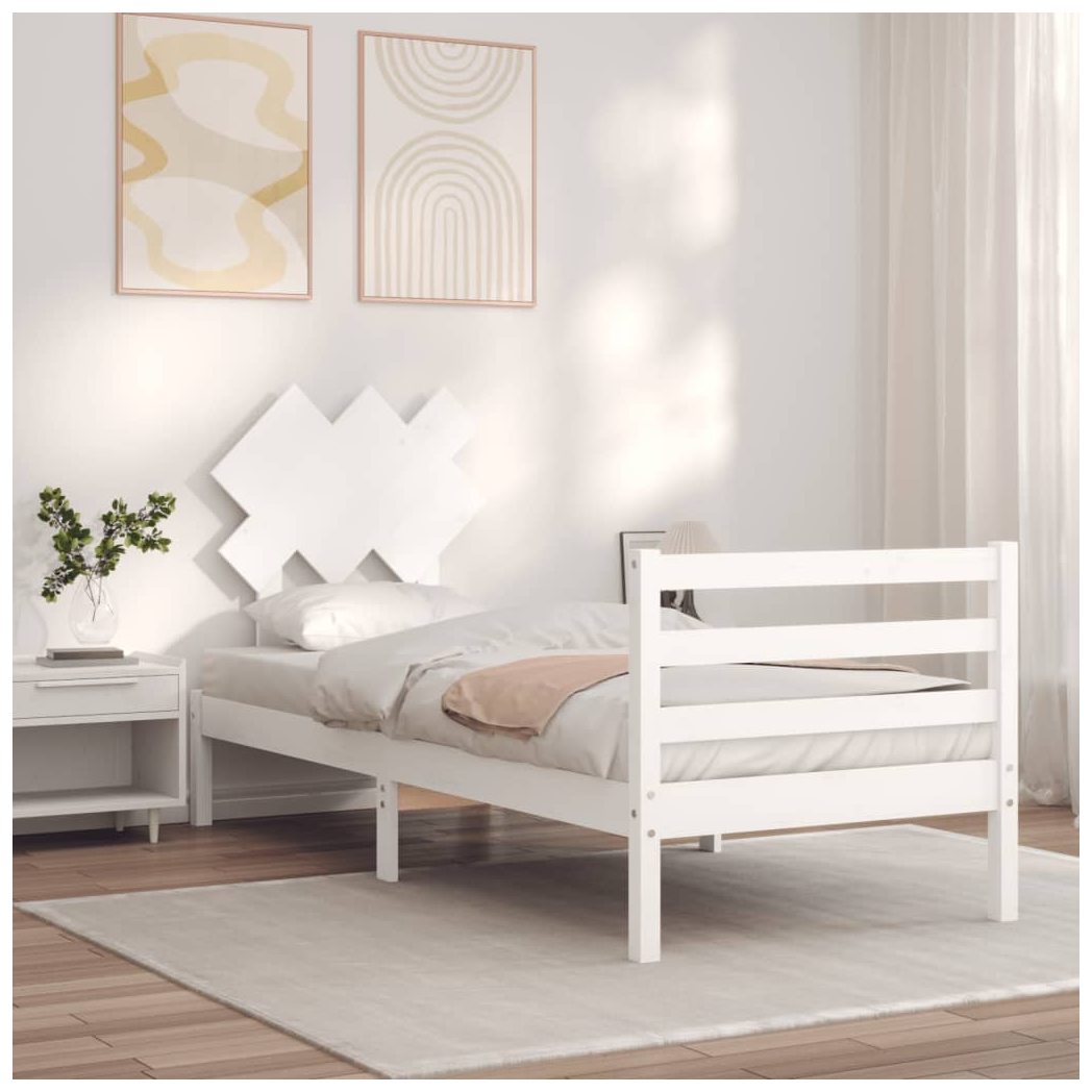 Bed Frame with Headboard White 90x200 cm Solid Wood