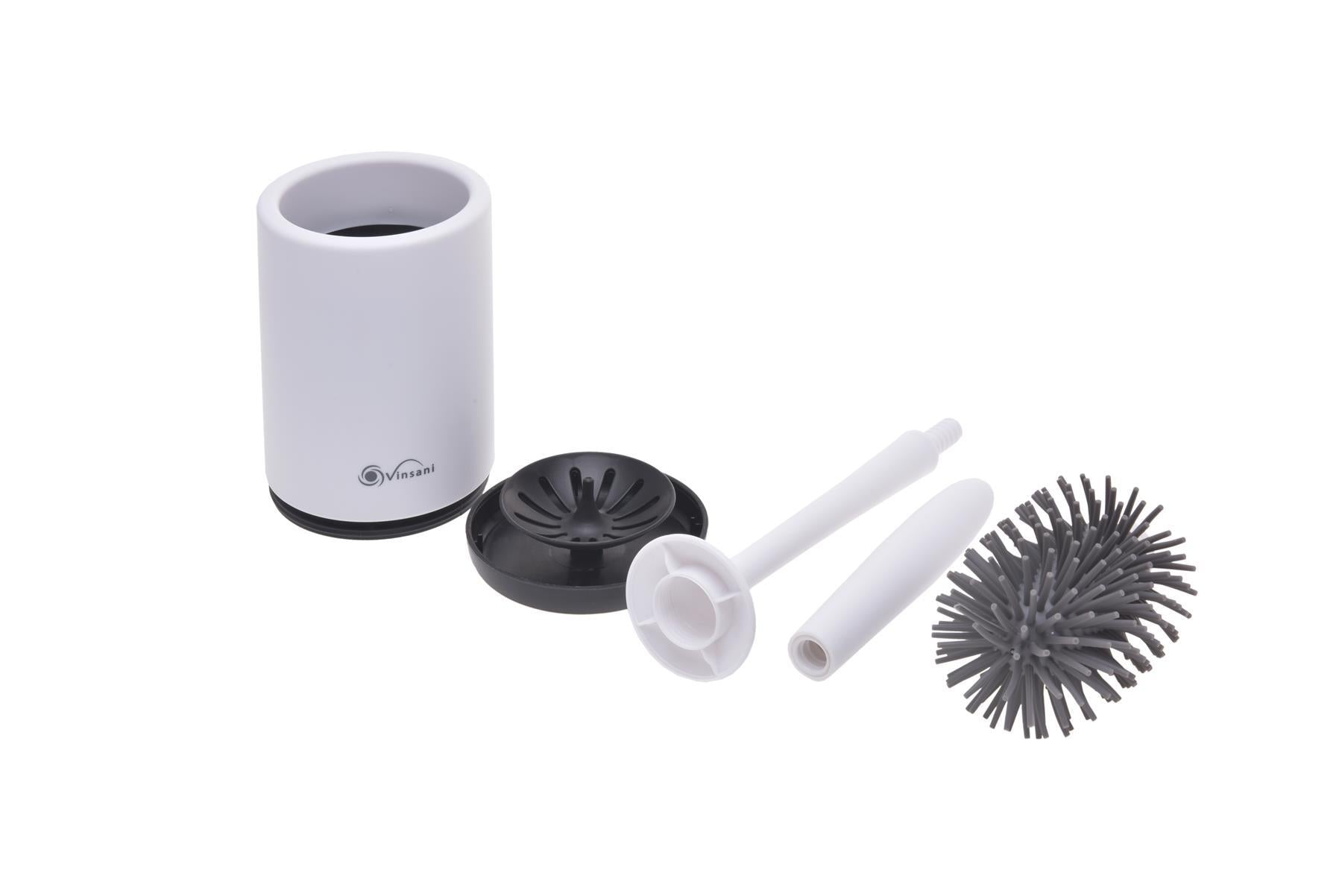 Vinsani Deep Cleaner Toilet Brush with Non-Slip Long Plastic Handle and Flexible Bristles, Rubber Toilet Brush with Quick Drying Holder Set for Bathroom Toilet - Black - 1 Pack