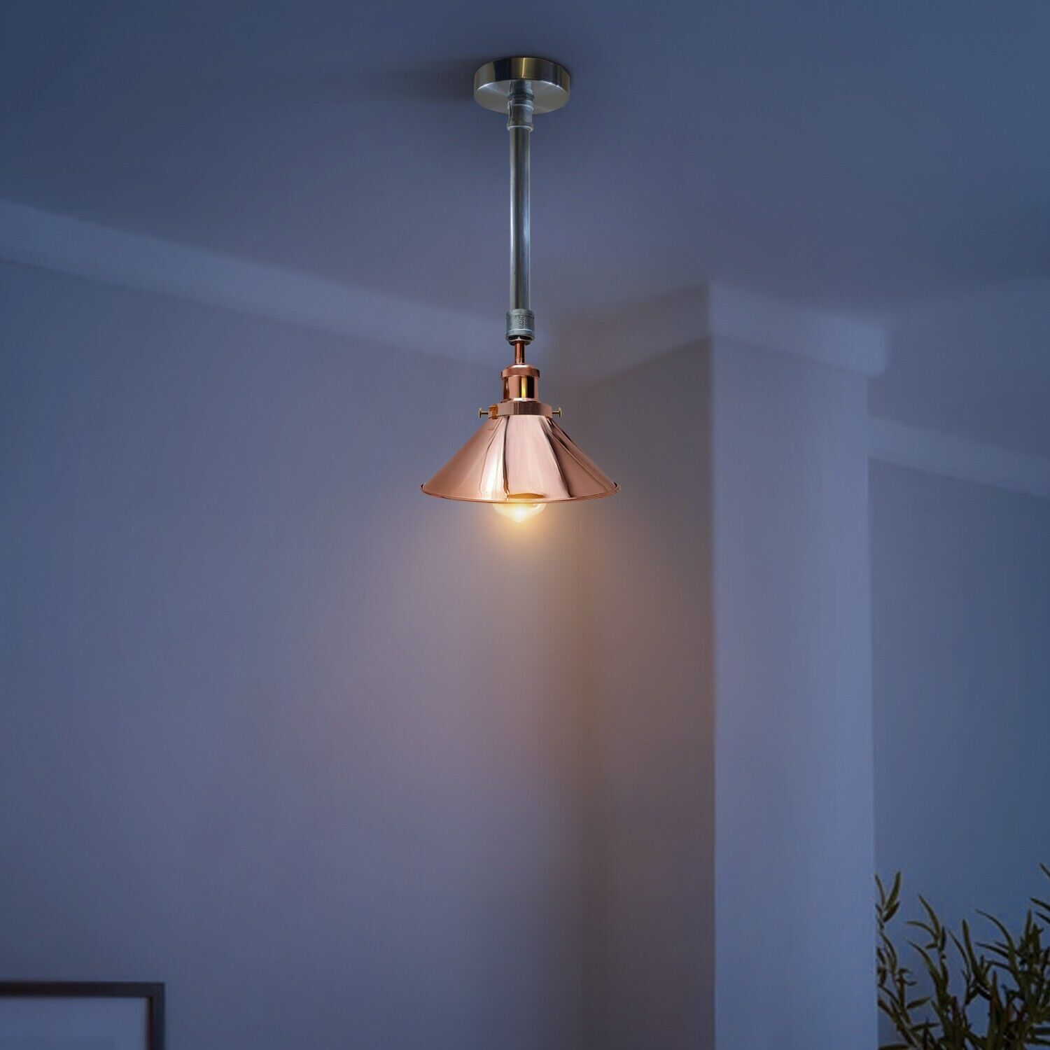 Product description:100% brand new and high qualityThis simple, sleek Ceiling Light has a galvanized finish for an industrial look. A white colour finish on the inside of the hood improves the lighting. Not just lighting, but also decorating your home.It will make your home more interesting and attractive.Perfect for creating a warm, romantic atmosphere for your home, restaurants and cafes.Specifications:Base type: E27Power source: AC110V-240VNumber of lamp sockets: 1Item colour: Galvanized + Rose GoldMaterial : MetalPipe length: 20 cmShade Diameter: 22cmShade Inside Colour: WhiteDelivery content:1 x Ceiling Light Set (The Bulb is not included)Note:Due to the light and screen difference, the items colour may be slightly different from the pictures.Please allow 0.5-2cm differences due to manual measurement.Delivery times can vary depending on the destination location. We would advise against booking an Electrician or fitter until you have received all items in satisfactory condition.Please kindly confirm the COLOR of the lamp before you buying."