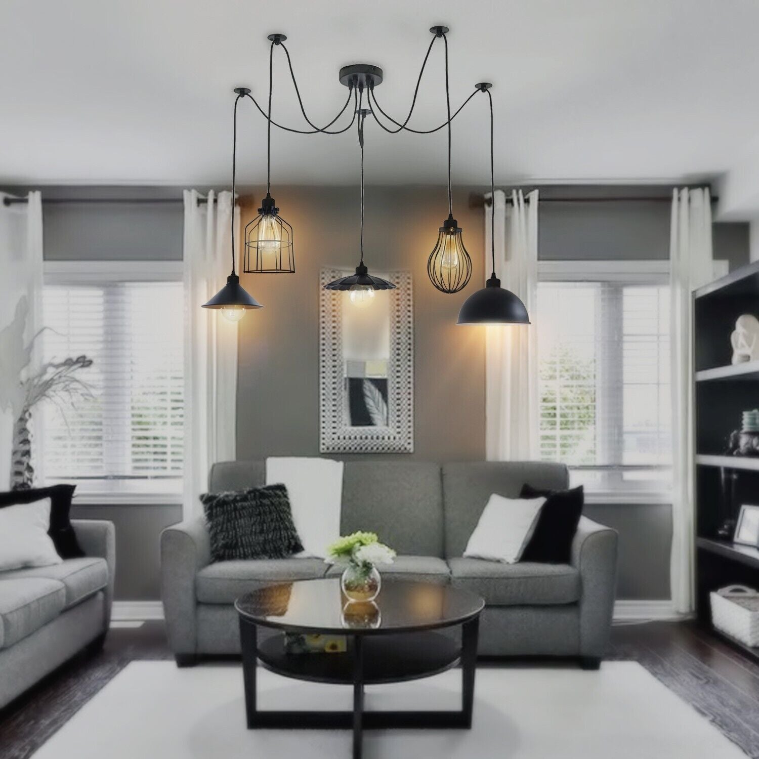 Product Description100% brand new and high qualityFeatures:Not only lighting but also decorating your house.It will make your home more interesting and attractive.E27 lamp base, you can choose any bulbs with the E27 interface as you want.Perfect to create a warm, romantic atmosphere for your home, restaurants, and cafes.Specifications:Base type: E27Power source: AC110V-240VLamp holder quantity: 5Item colour: BlackMaterial: Metal + PVCWire length: 2m (PVC 3 core Cable)Ceiling plate: 12cmPackage included:1 X Pendant Lamp Base (120mm x 25mm)5 X Light Holder with 2m Cable (The bulbs are not included)5 x Upper Pulley5 x Different light shades1 X Assemble PartsNote:Delivery times can vary depending on the destination location. We would advise against booking an Electrician or fitter until you have received all items in satisfactory condition.Due to the light and screen difference, the items colour may be slightly different from the pictures.Please allow 0.5-2cm differences due to manual measurement.Delivery times can vary depending on the destination location. We would advise against booking an Electrician or fitter until you have received all items in satisfactory condition.Please kindly confirm the COLOR of the lamp before you buying.