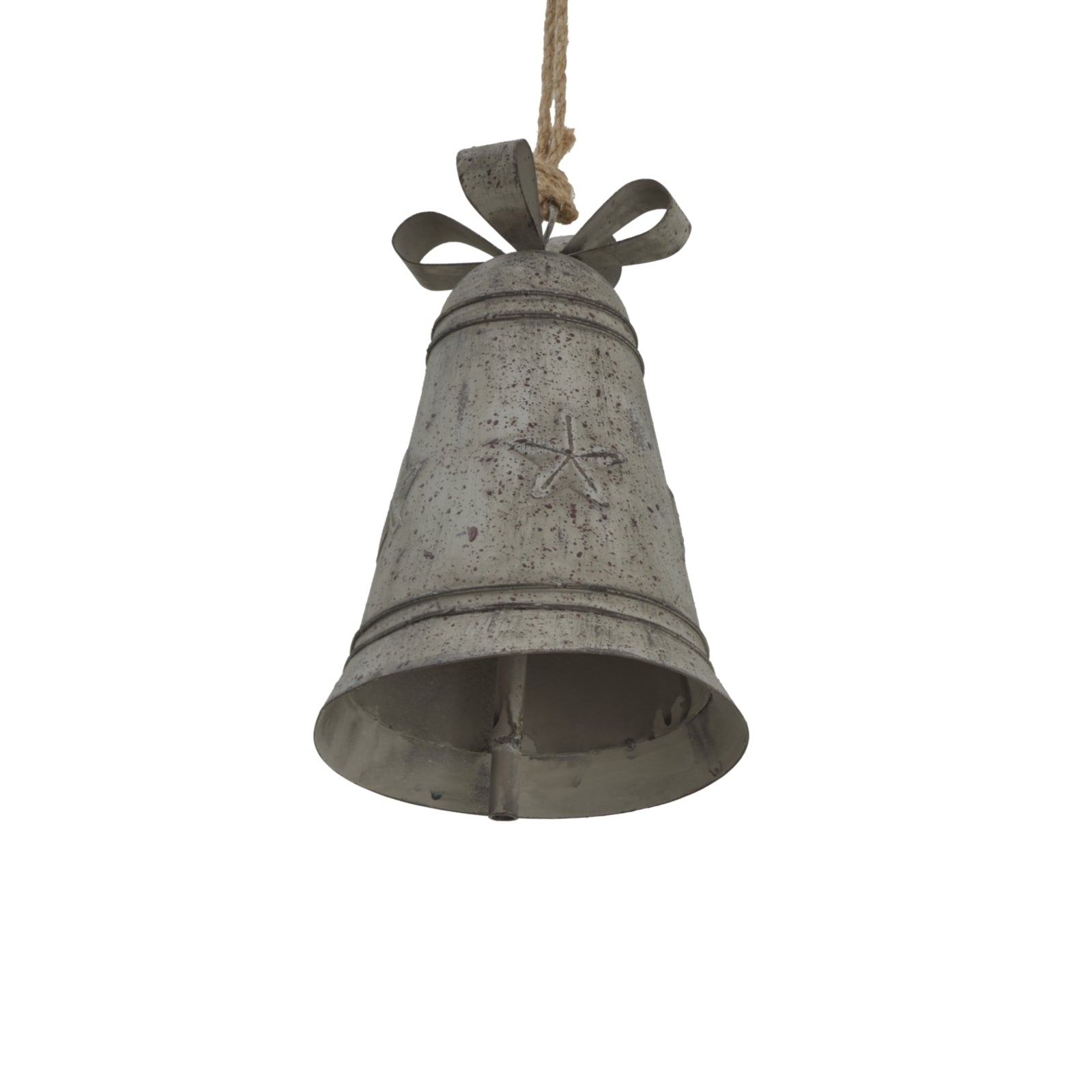 This charming metal bell radiates rustic allure with its weathered finish and graceful bow detail, offering a perfect balance of pastoral charm and decorative finesse. The gentle curves and antique-style patina create an authentic countryside aesthetic that resonates with both traditional and modern home settings. The thoughtfully sized ornament delivers visual interest whether displayed individually or as part of a curated collection. For maximum visual impact, pair this piece with complementary metalwork accessories such as vintage-style candle holders, wire basket displays, or aged metal wall hooks. The bell's distressed surface treatment and decorative bow element make it an ideal accent for seasonal displays, working particularly well with rustic garlands, metal wreaths, and industrial-style hanging planters. Its versatility shines through all seasons, from winter holiday arrangements to summer garden parties, making it a reliable stock item that appeals to diverse customer preferences. The piece speaks to the growing demand for authentic, character-rich home accessories that tell a story and create atmosphere.