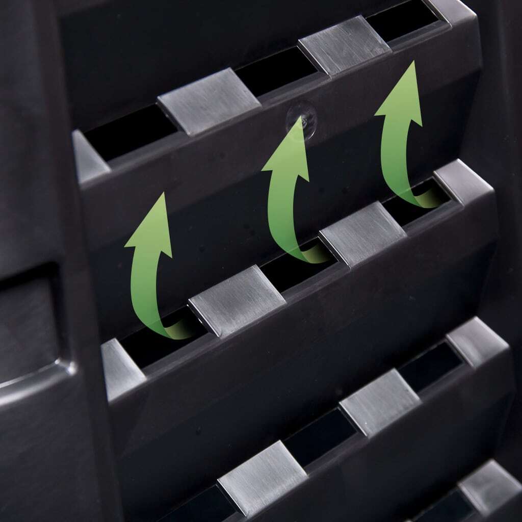 This weather-resistant garden composter bin helps to hasten the decomposition of organic matter and prepare fertiliser on your own. The waste converter is suitable for garden as well as kitchen waste. High heat development inside of the composting unit promote a quicker bacterial decomposition and produce better humus. Featuring compact design, the garden composter takes up little space, but boasts large volume. The lids on top makes it easy for you to fill from above. And the flap ensures a simple removal of the humus. The drip irrigation system, padlock hole, solid side latches, strong hatch hinges, comfortable handle and large slide gates with comfortable holders all ensure its user-friendly usage.