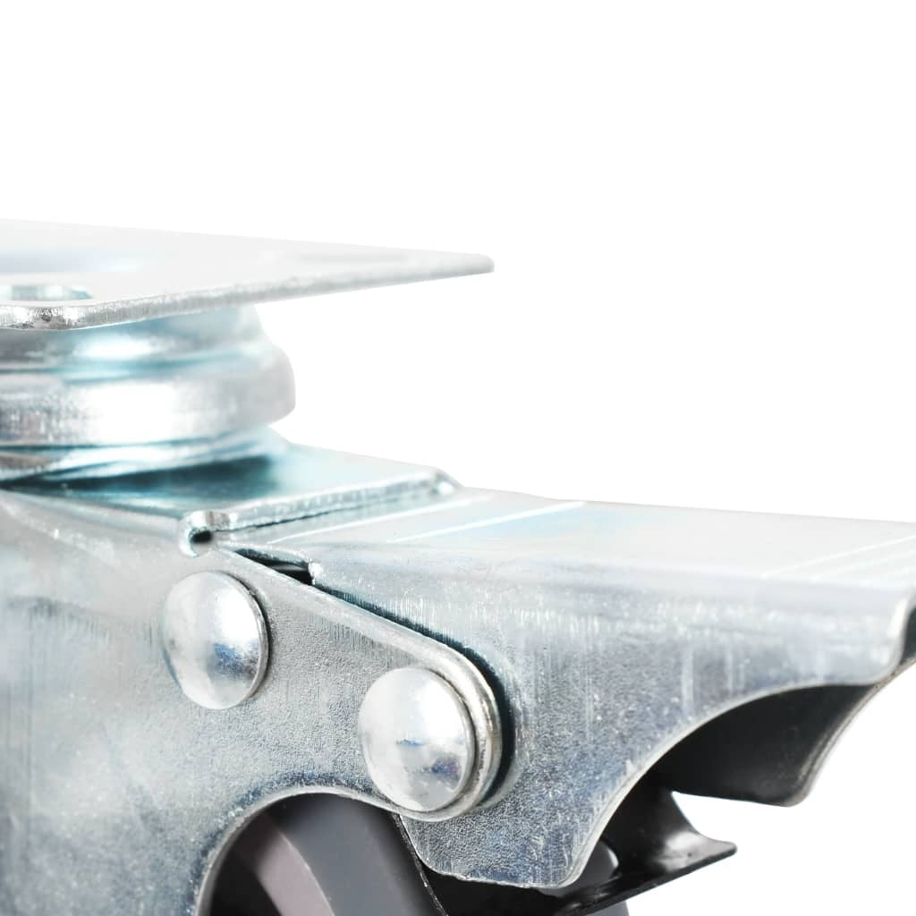 This set of 12 swivel casters will be the perfect accessory for small equipment and furniture like workbench, trolley, coffee table, plant stand, bookshelf, shopping cart, etc. These casters are made of TPR (thermoplastic rubber) which is distinguished by a good shock and vibration resistance, enabling these casters to run smoothly and quietly. Additionally, their soft surfaces effectively protect your floor from scratching. Besides, the zinc-coated iron frame is highly rust-resistant and thus adds to the catser's sturdiness and durability. Half of these swivel casters are equipped with brakes for flexible control. Each caster has a maximum loading capacity of up to 35 kg. Delivery includes 6 swivel casters and 6 swivel casters with brakes.