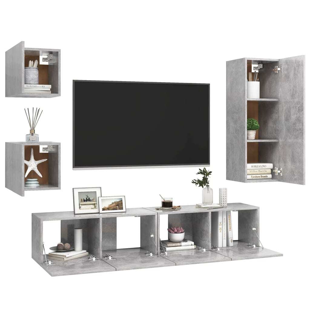 5 Piece TV Cabinet Set Concrete Grey Engineered Wood
