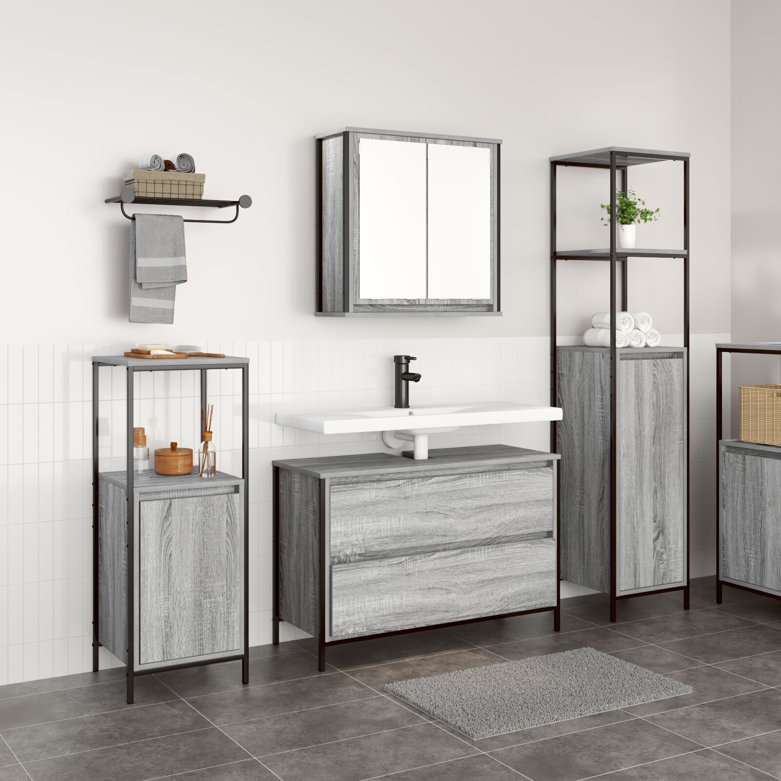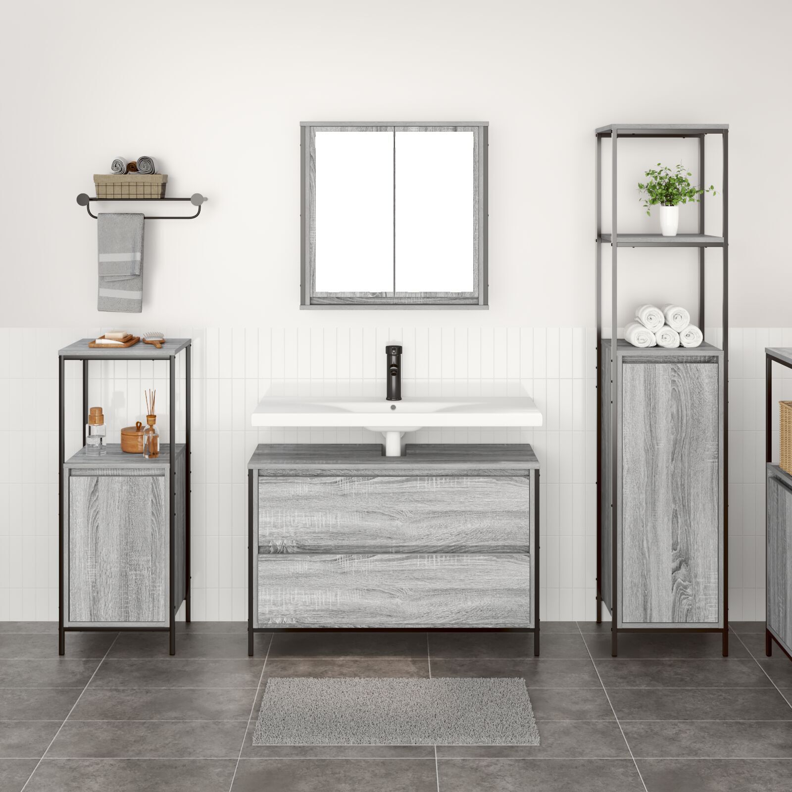 Bathroom Furniture Set with Shelf with Door 3 pcs Grey sonoma