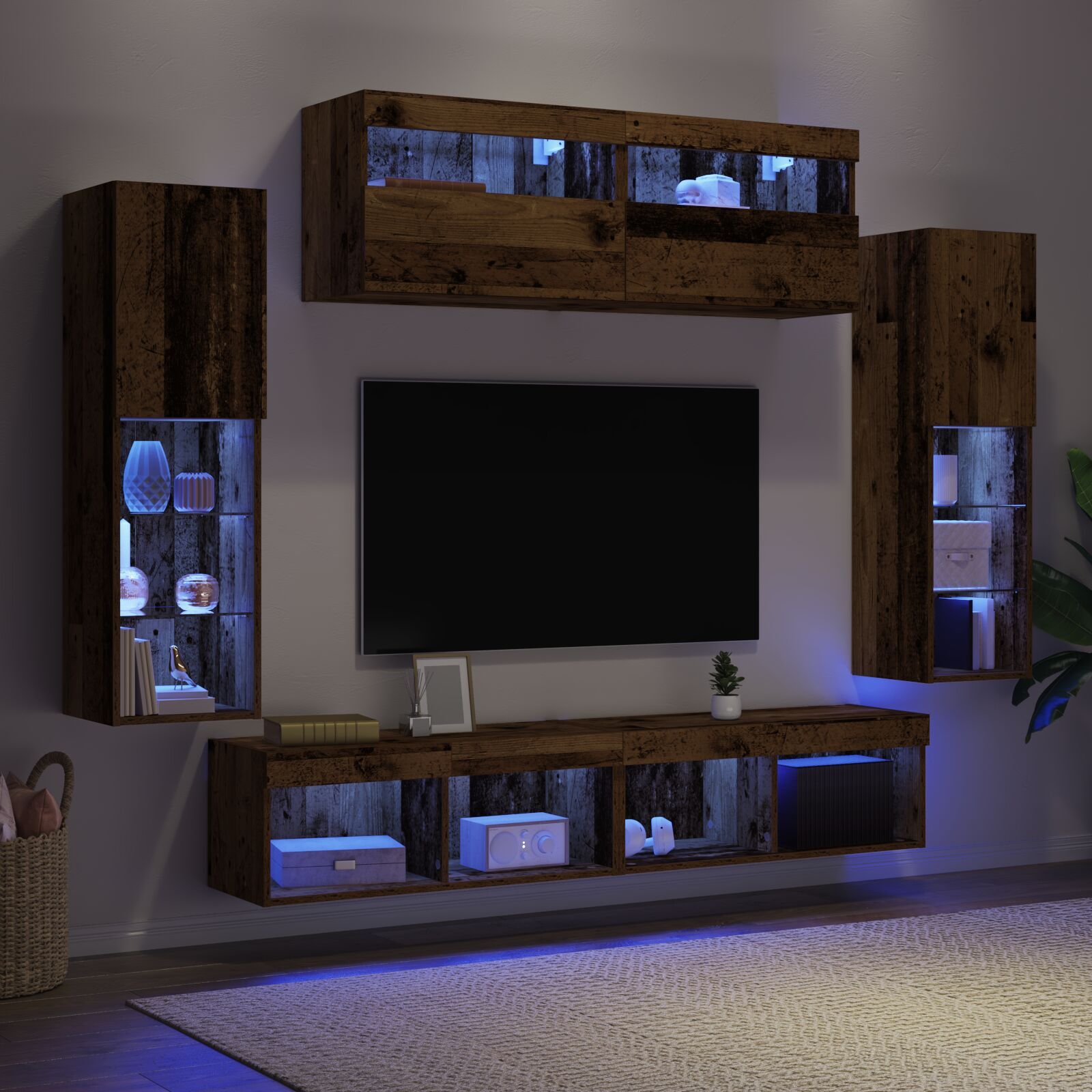 TV Wall Cabinet Set 6 pcs Old wood 30.5 x 30 x 102 cm