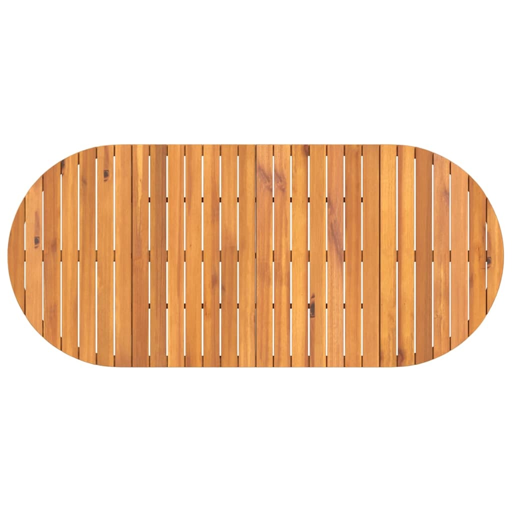 Enjoy a nice meal outdoors with your family and friends with this wooden garden dining set! Robust and stable material: Solid acacia wood is renowned for its strength and durability, complemented by unique grain patterns that enhance its visual appeal. Finished with a protective oil layer, the table is designed for outdoor use, offering resistance to the elements while preserving its beautiful wood grain.Sturdy tabletop: The outdoor table offers excellent support for holding your drinks, snacks, fruit baskets, and your favourite decorations.Practical backrest and armrest: This garden chair features a backrest and two armrests that offer optimal support and comfort for users.Well-ventilated and pooling prevention: The slatted design promotes optimal airflow and effectively prevents water pooling, ensuring a dry and comfortable seat.Wide application: The outdoor dining set is ideal for a variety of outdoor settings, including patios, gardens, balconies, and terraces. Whether you're enjoying a cup of coffee, relaxing, or entertaining guests, it adapts to any outdoor occasion, offering both functionality and aesthetics for your space. Good to know:To make sure your outdoor furniture stays beautiful, we recommend protecting it with a waterproof cover.