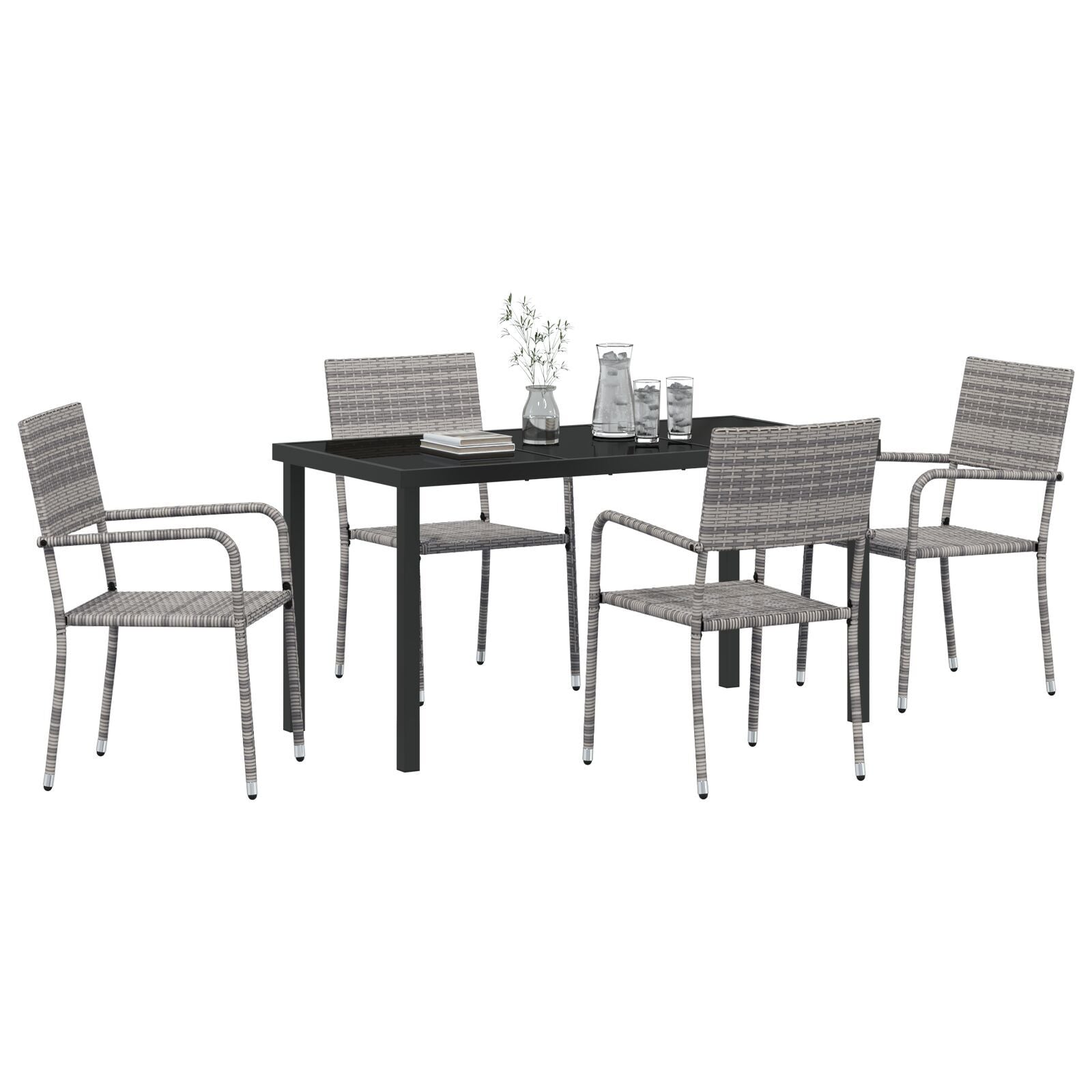 Garden Dining Set with Cushion 5 pcs Grey Poly Rattan
