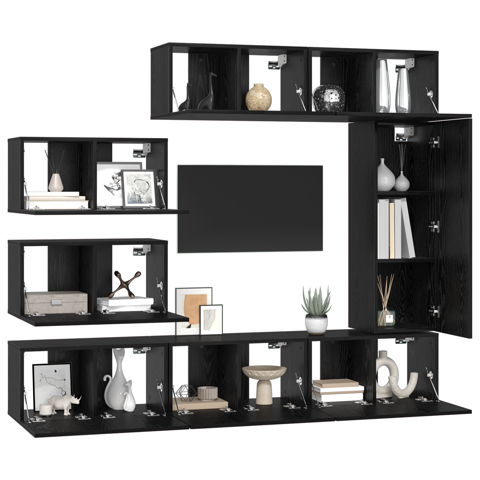 TV Cabinet Set Wall-mounted 8 pcs Black oak 30.5 x 30 x 90 cm