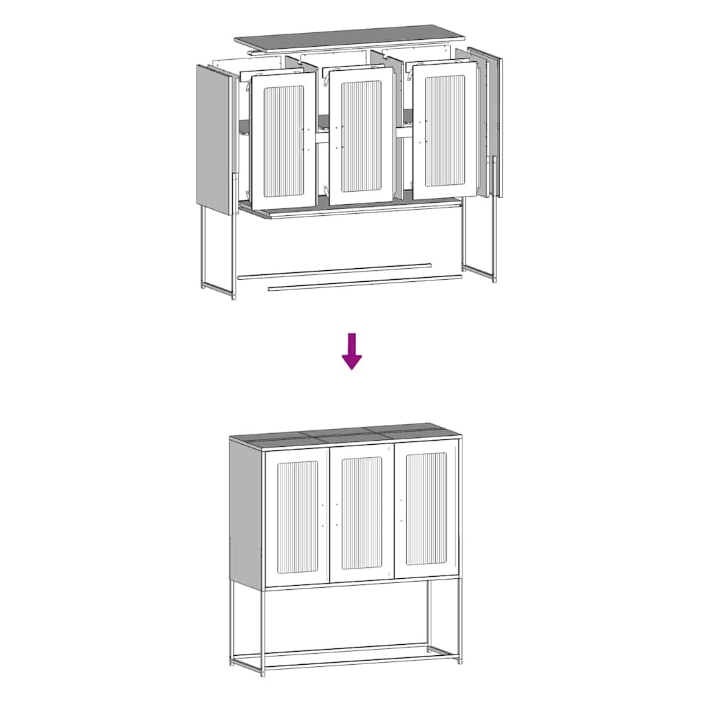 This sideboard offers both decorative appeal and practical storage, making it a perfect addition to your home. Stable and long-lasting frame: Steel is strong, stable, and durable, making it an ideal choice for a wide range of applications, from furniture manufacturing to construction.Practical handles: The storage cabinet comes with handles that provide a comfortable grip, helping you open and close the cabinet easily while adding extra beauty.Ample storage space: The buffet offers ample storage space for dining essentials and other household items to keep them organised and within reach.Metal feet: The metal feet add a calm style to your interior while ensuring stability.Wide applications: You can use this side cabinet as a bathroom cabinet or kitchen cupboard, or just as an elegant storage cabinet in bedrooms, powder rooms, entryways, corridors and offices, dining rooms, and other living areas. Warning:To prevent it from tipping over, this product must be used with the provided wall attachment device.