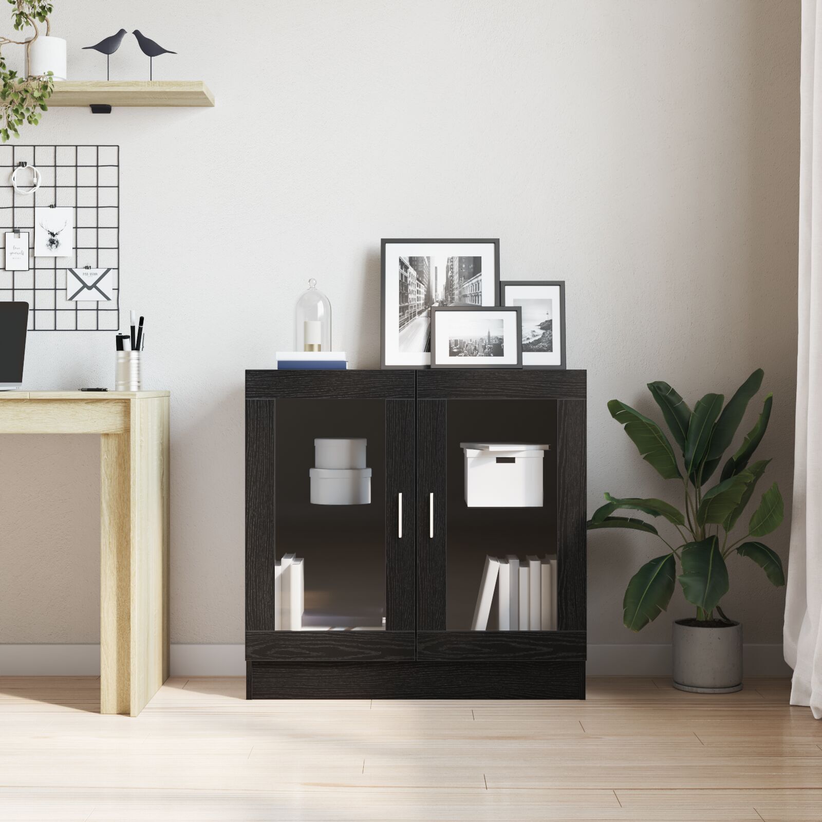 This Modern Book Cabinet brings a touch of elegance and functionality to your living room. Its sleek rectangular design, characterized by clean lines and minimal ornamentation, makes it a versatile addition to contemporary décor. Perfect for storing books and showcasing decorative pieces, it invites both style and utility into your home. With a focus on simplicity and modern aesthetics, this cabinet offers both visual appeal and practical storage solutions for an array of needs, enhancing the appeal of any room. Materials: Constructed from durable engineered wood, this cabinet stands as a testament to both style and longevity. The engineered wood offers a robust frame that withstands everyday wear and tear while maintaining an elegant appearance. Supplemented by glass elements, the cabinet adds a refined touch to any living area, merging transparency with sturdiness to display your items attractively. Included Components: Transparent glass doors offer a perfect blend of elegance and functionality, allowing for easy visualization and access to stored items. Metal bar handles provide a sleek grip, complementing the cabinet's modern aesthetic. Spacious shelves are crafted to accommodate various decorative pieces, offering flexibility in storage and arrangement to suit user preferences. Features /Function /Design: Engineered with lasting reliability in mind, the cabinet features a long-lasting build that ensures its structural integrity over years of use. Offering both purpose and style, the cabinet presents utility in organizing books and decorative items, enhancing room aesthetics through its cohesive design. Recommended Uses: Intentionally designed for living room settings, this book cabinet optimizes space, making it ideal for hosting an extensive book collection or displaying art and collectibles. Its versatile form ensures that it adapts to various room layouts while enhancing the overall ambiance. Care &Maintenance: Simple maintenance is achieved by wiping surfaces with a dry cloth to remove dust and debris. The glass doors should be handled with care, maintaining their clarity and shine through regular cleaning using appropriate glass cleaners. This upkeep ensures the cabinet remains pristine and inviting.