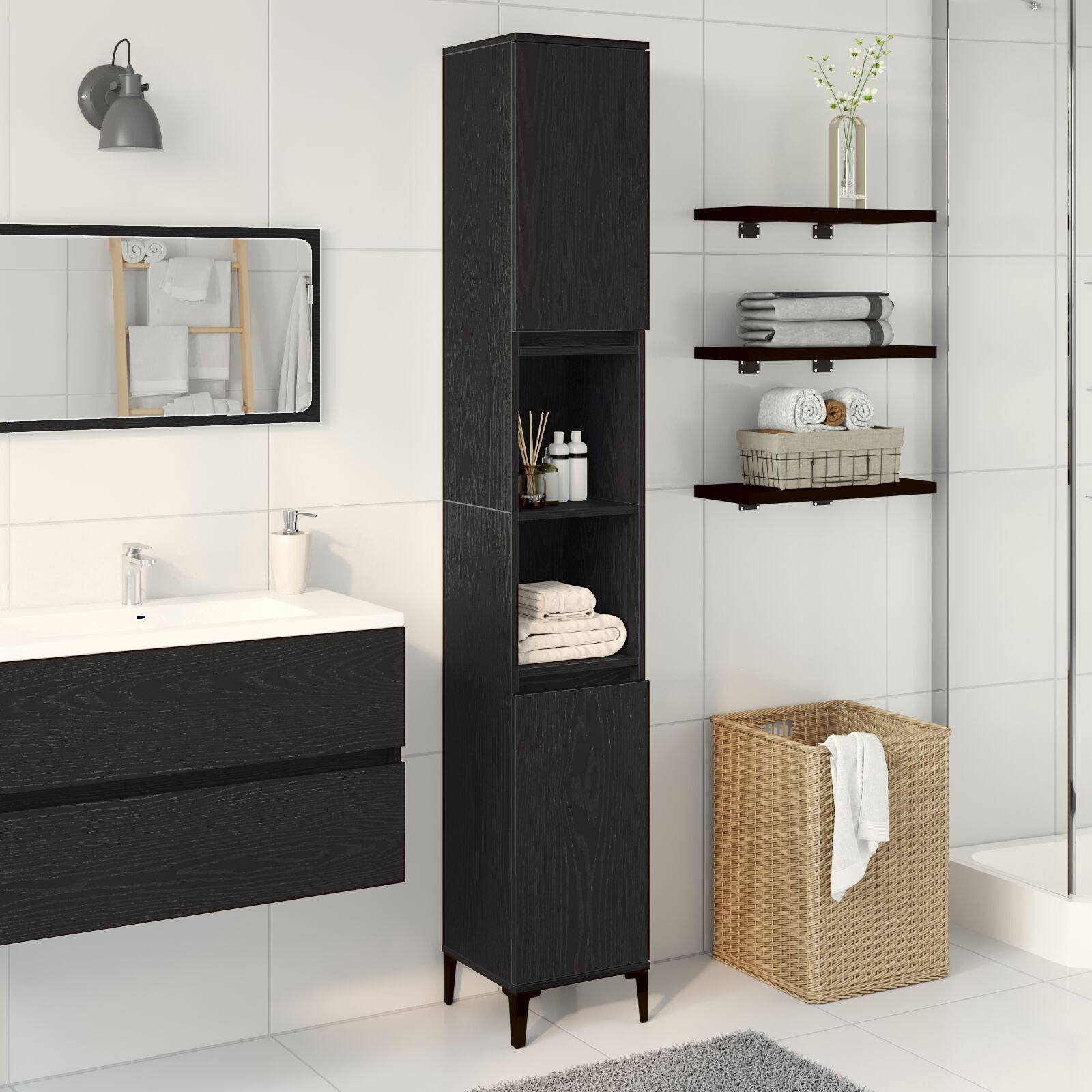 Bathroom Cabinet Black oak 30 x 30 x 190 cm Engineered Wood